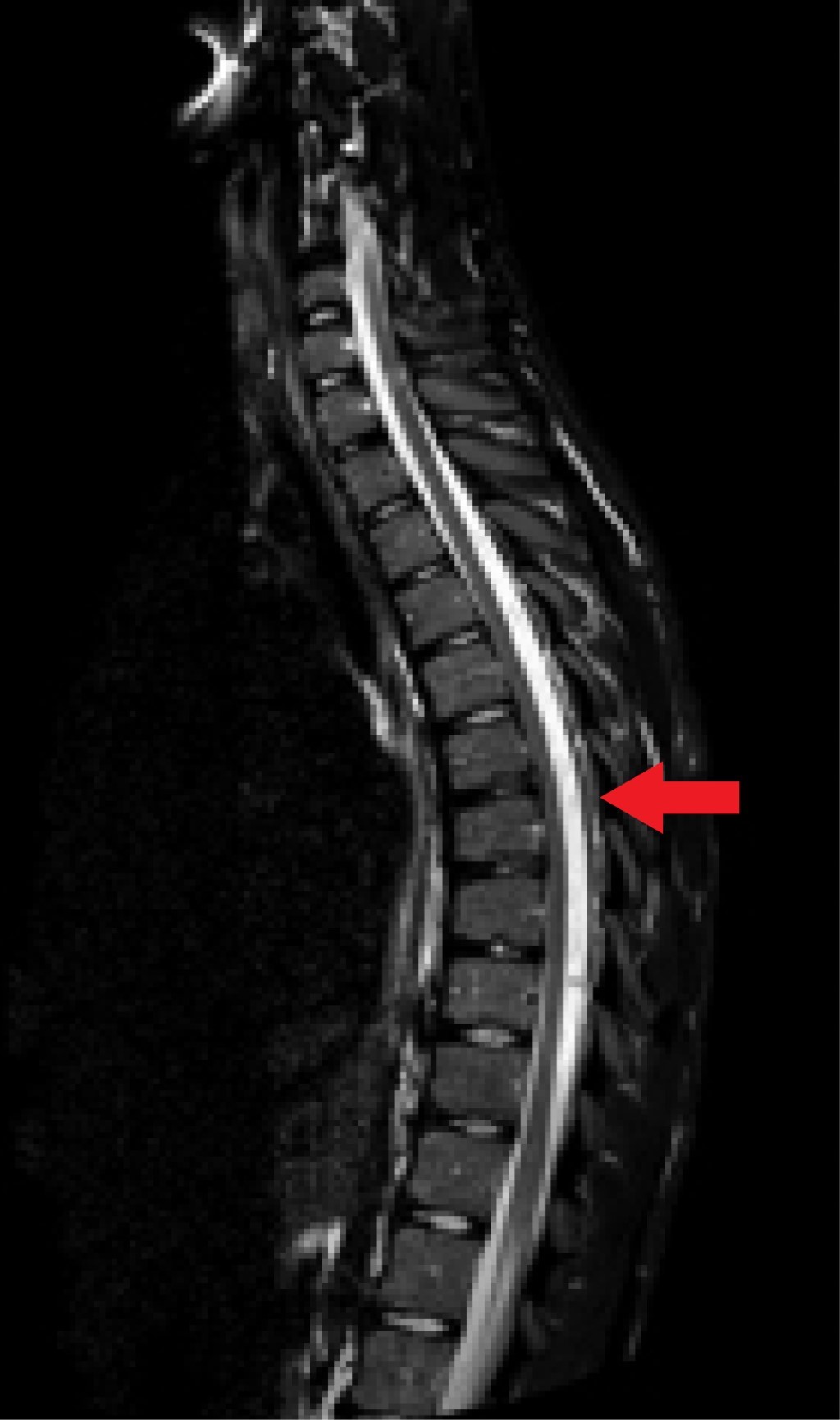 La RM (realizada 20 días después de la segunda consulta) muestra un material hipertenso en las secuencias T1 (Figura 1) y T2 (Figura 2) e hipointenso en la secuencia STIR (Figura 3) en el espacio epidural posterior desde D3 a D9. Con ello se llega al diagnóstico de lipomatosis espinal epidural posterior desde D3 a D9.