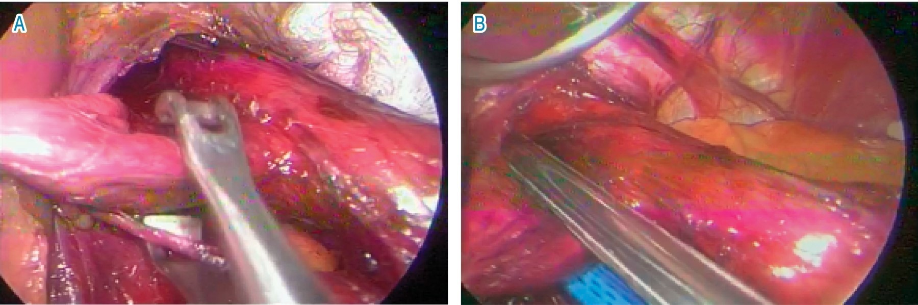 No existe un consenso sobre cuál es el tratamiento quirúrgico adecuado para esta patología, existiendo abordajes torácico y abdominal, con o sin miotomía y cuál tipo de cirugía antirreflujo se debería realizar. Dichos procedimientos presentan morbilidad de 8.7 a 25%, fugas en 0 a 18.2% y mortalidad de 0 a 11.1%.11,12 En este caso, debido a la mayor experiencia del grupo en abordaje abdominal, se escogió esta vía de manera laparoscópica para el tratamiento, al no encontrar trastorno de motilidad en la manometría, se decidió no realizar miotomía y sí una funduplicatura tipo Nissen, debido a que es el procedimiento de elección en cirugía antirreflujo.