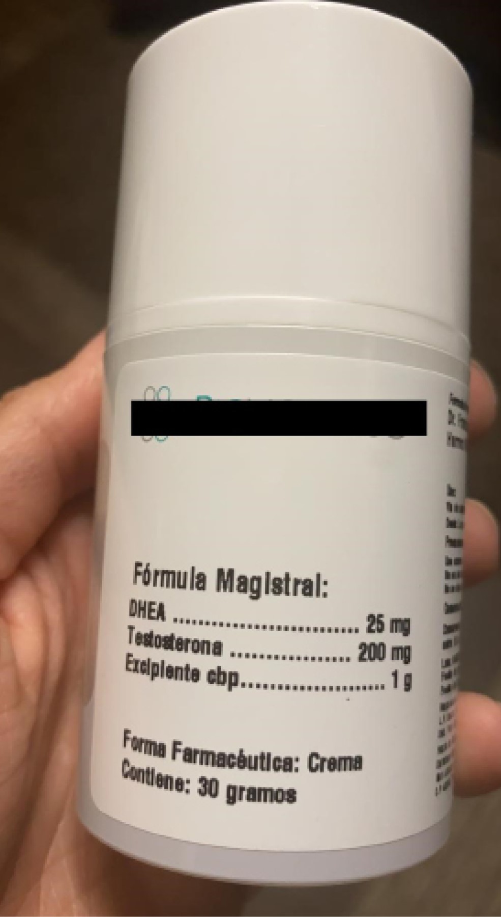Con los hallazgos clínicos y de laboratorio se procedió a realizar interrogatorio dirigido, estableciendo que el padre utilizaba diariamente, de manera tópica, un gel que contenía testosterona (concentración de testosterona 200 mg/g y DHEA 25 mg/g), el cual fue adquirido en un gimnasio con el propósito de aumentar la masa muscular (Figura 1). Además, refirió contacto físico estrecho con sus hijos, comentando que con frecuencia (tres a cuatro noches por semana) dormían juntos en la misma cama.