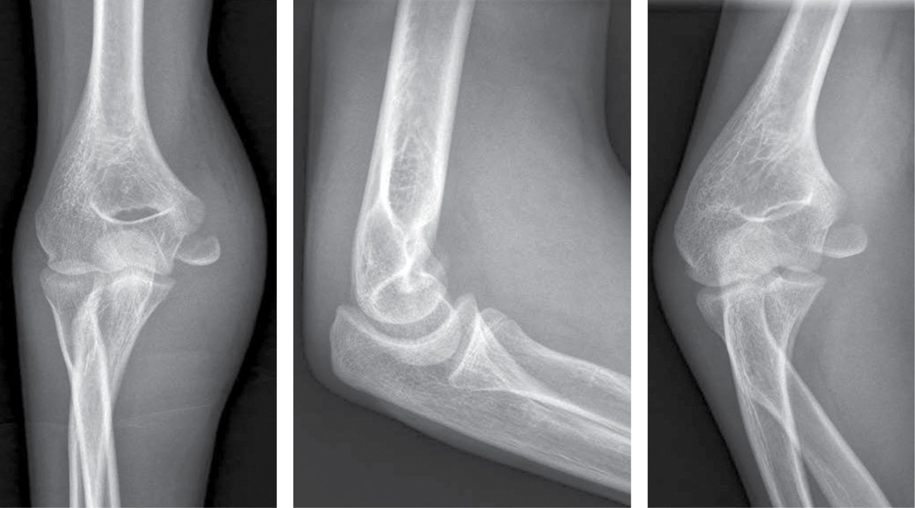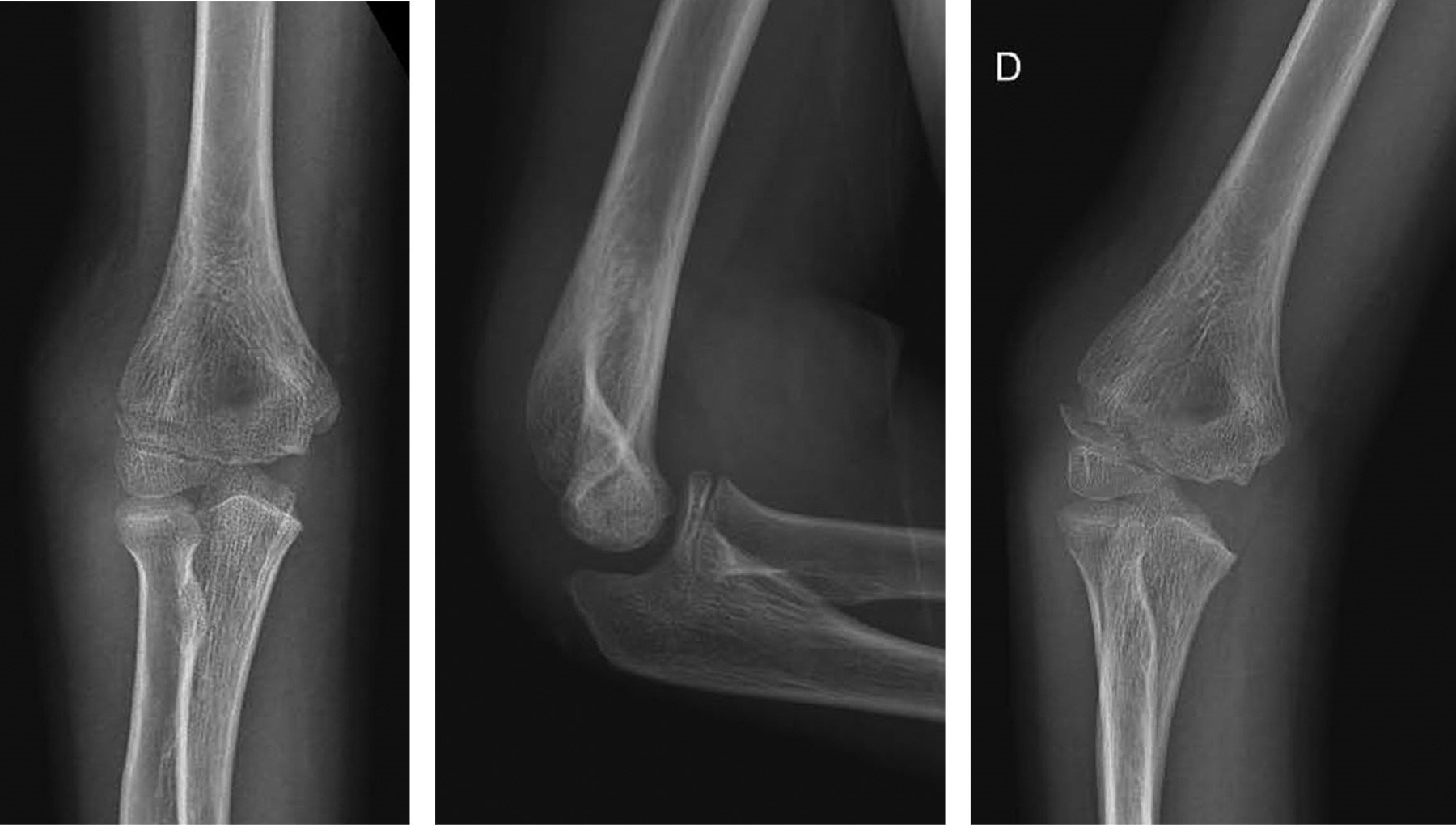 Las fracturas del cóndilo lateral del húmero sin desplazamiento o con un desplazamiento mínimo (≤ 2 mm) se pueden tratar con un yeso braquiopalmar con el antebrazo en supinación durante 4-6 semanas.93 Se recomiendan radiografías semanales las tres primeras semanas para ver que no haya desplazamiento secundario. Las fracturas desplazadas (> 2 mm) se manejan con frecuencia quirúrgicamente94 con el fin de evitar la pseudoartrosis, la consolidación defectuosa, los trastornos del crecimiento y la artritis posterior.