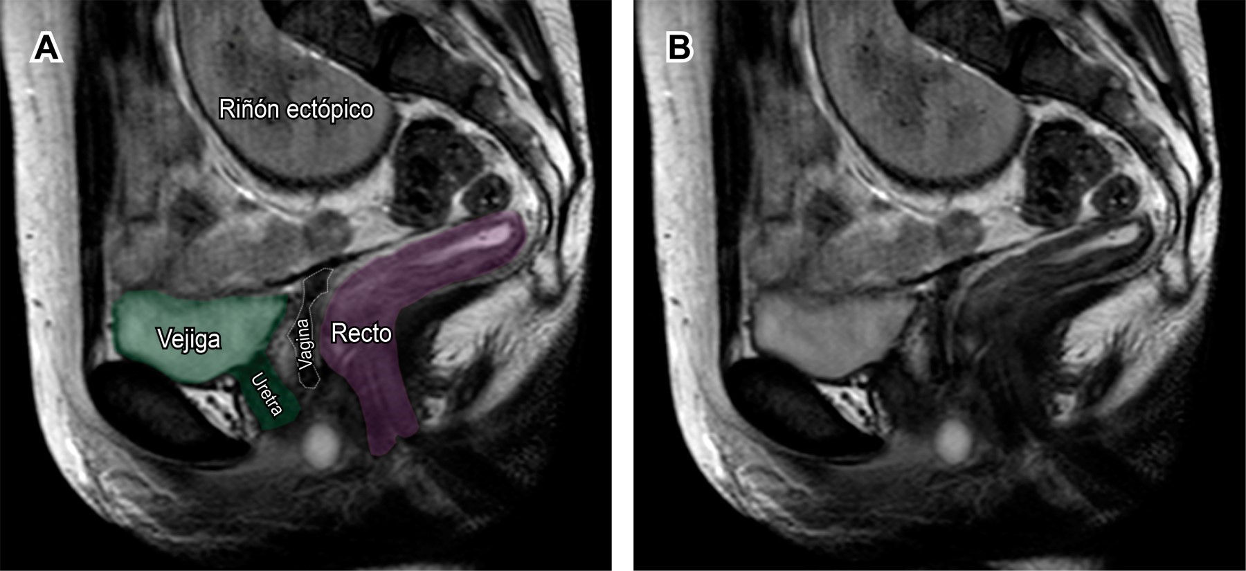 La resonancia magnética se considera el estándar de oro para el diagnóstico de agenesia uterovaginal, no es invasiva y es superior a la tomografía computarizada y ultrasonido al mostrar en detalle restos uterinos o agenesia completa, incluida la presencia de endometrio en los restos uterinos.1