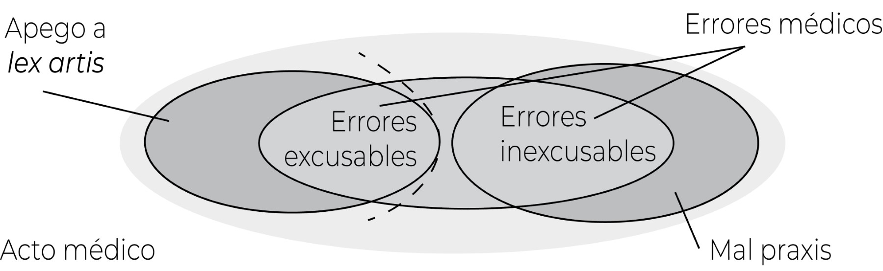 Sin embargo, de una equivocación puede resultar el error, aun cuando se comprueba que se ha actuado con sinceridad o buena fe y siempre en lo establecido por la lex artis, incluso al haber realizado todo lo que estaba al alcance de las condiciones específicas de su puesto laboral, con el objetivo de obtener un diagnóstico oportuno y prestar la mejor atención a todas las personas. De modo que, un error puede ser producto de una serie de fases que se originan sin que exista una responsabilidad única, dado que puede ser una falla como consecuencia de un resultado en la salud, o bien del uso de un plan que se obtenga erróneamente para alcanzar un objetivo, por lo que el error puede dividirse en excusable o inexcusable (Figura 1).3