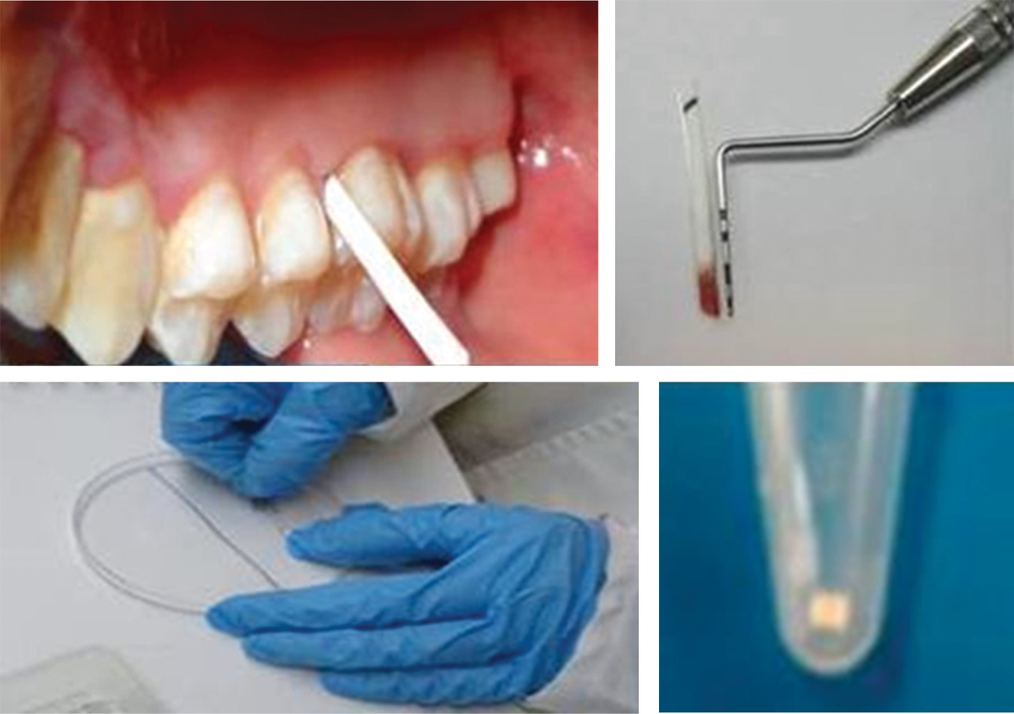 Ningún paciente fue de nuevo ingreso, todos tenían aparatología fija de ortodoncia de al menos un mes de anterioridad, a todos los pacientes se les tomó una muestra de líquido crevicular del surco gingival del primer molar superior derecho en su aspecto mesial de la cara palatina, mediante el empleo de una tirilla de papel FTA de 1.5 × 12 mm.