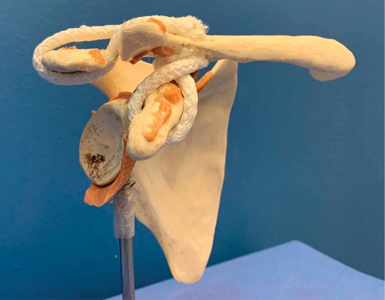 La importancia de restaurar la estructura articular tanto en el plano horizontal como en el vertical es un importante parámetro para recuperar la anatomía nativa de la articulación AC.3 La ventaja de nuestra técnica quirúrgica es que restaura la anatomía de los ligamentos CC y restablece la estabilidad horizontal de la articulación AC con la aplicación de un aloinjerto y fijación de biotenodesis con dos tornillos. El uso de aloinjerto para replicar los ligamentos CC nativos demostró proporcionar mejor estabilidad vertical y horizontal en comparación con otras técnicas no anatómicas.2