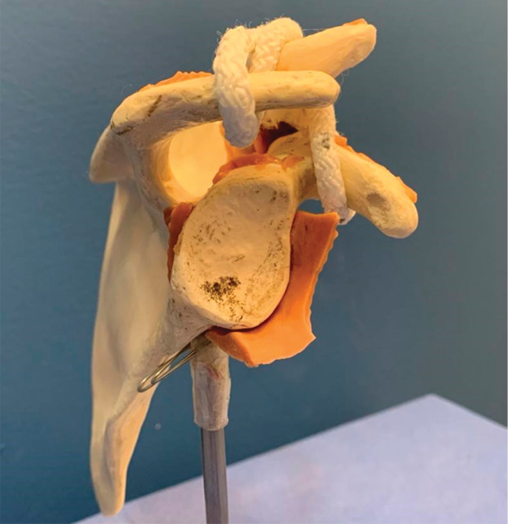 Restablecimiento de la estabilidad horizontal en luxaciones acromioclaviculares III-V mediante la reconstrucción anatómica de los ligamentos coracoclaviculares y acromioclaviculares; técnica quirúrgica