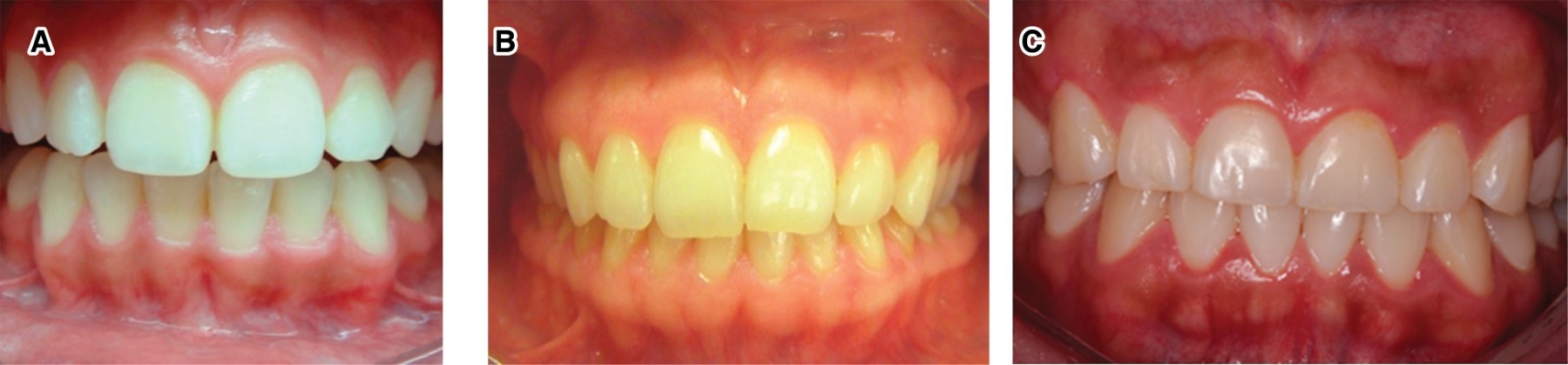 - d. Frenillo aberrante. Clínicamente, los frenillos con inserción en papila interdentaria y en la papila palatina se consideran aberrantes y se asocian con la pérdida de la papila interdental, recesión gingival, diastema, dificultad para el cepillado dental y malposición dentaria.10