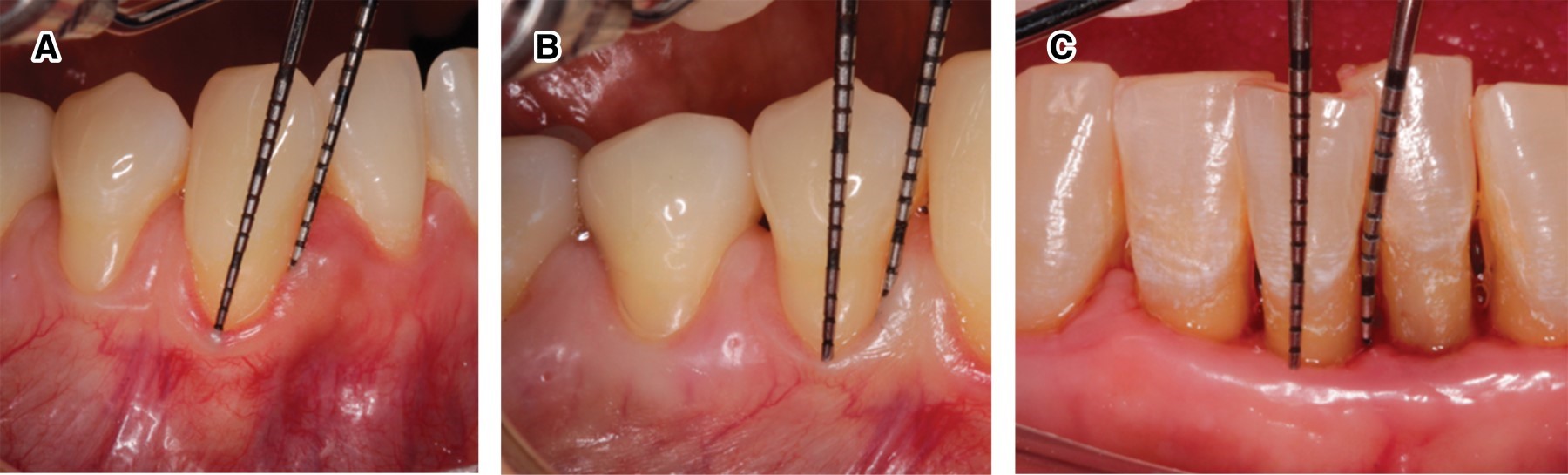 Dado que las variaciones en la profundidad al sondeo pueden diferir, dependiendo de la altura del tejido blando con respecto a la ubicación del implante, no es posible definir un rango de profundidad al sondeo compatible con la salud (Figura 8A). Esto implica que la salud periimplantaria también puede existir alrededor de implantes con soporte óseo reducido.13