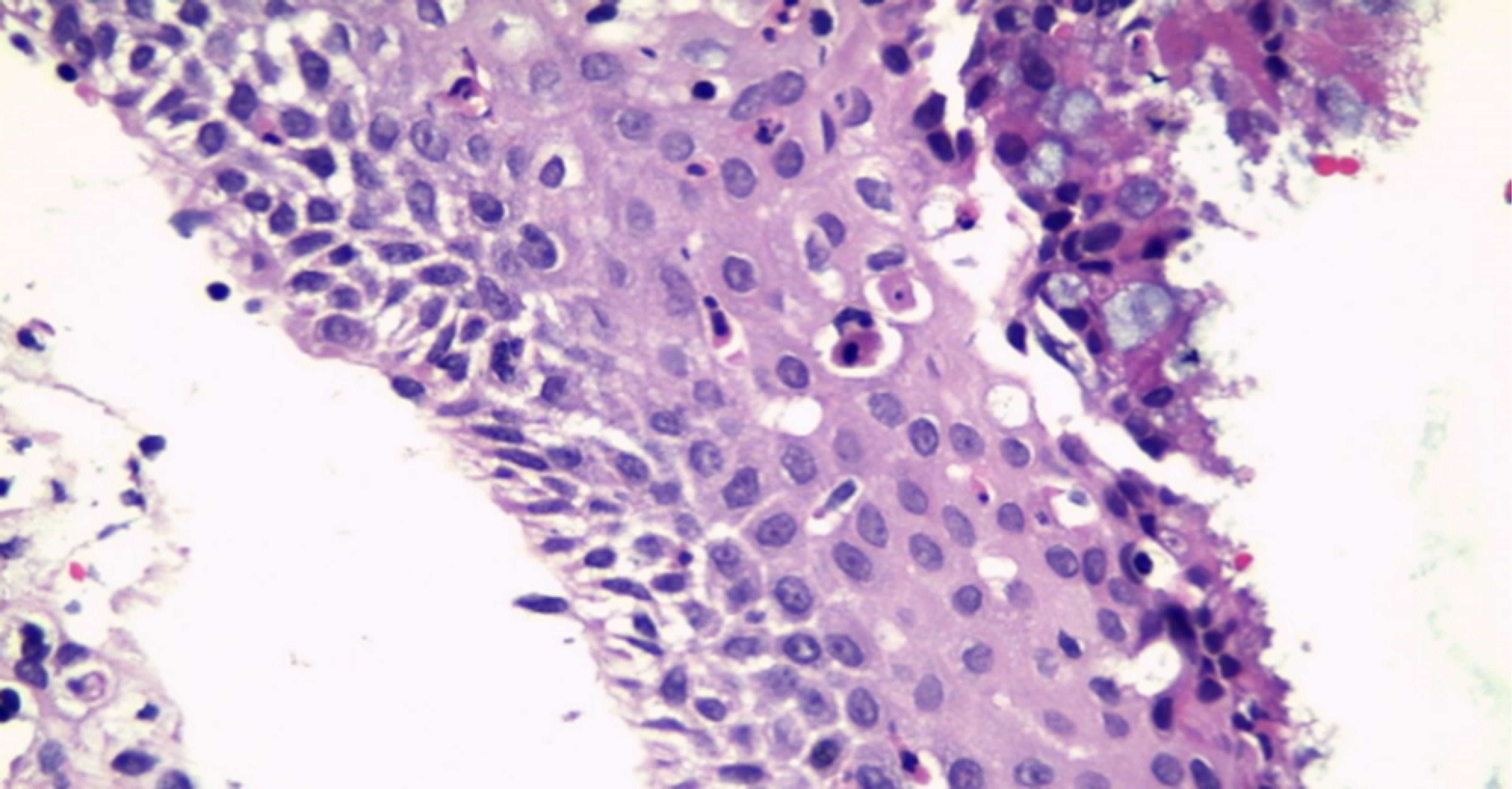Histopatología. El estándar de oro es el análisis histopatológico. A veces, tras el drenaje del quiste, puede ser difícil obtener una muestra quirúrgica de la pared quística. En el análisis rutinario de hematoxilina y eosina, se muestra un epitelio columnar o cuboidal simple con células caliciformes ciliadas o mucinosas. También se observan con frecuencia células columnares pseudoestratificadas.