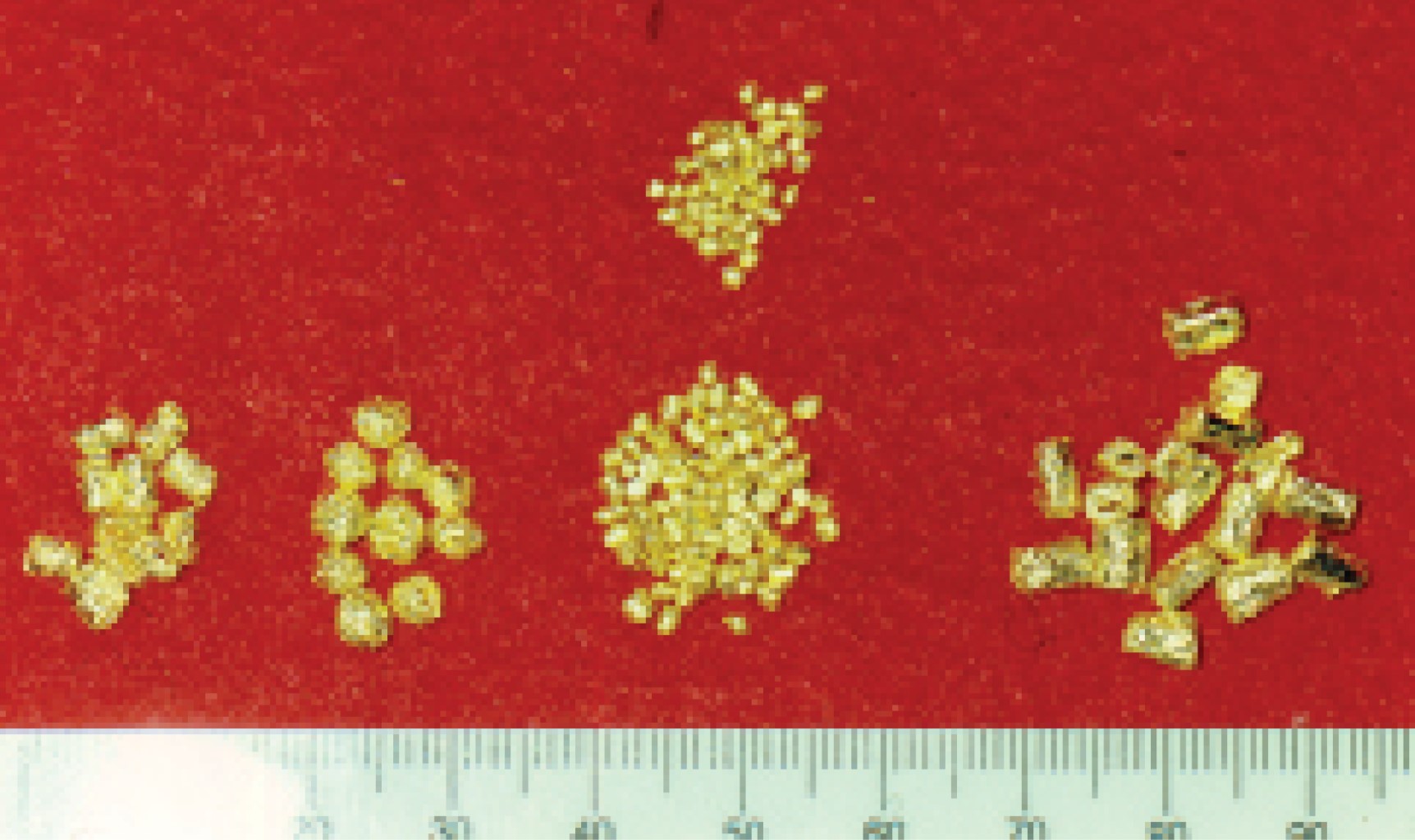 En épocas pasadas el fabricante sólo proveía el oro en hoja que tenía que ser recortado en porciones específicas dependiendo del tamaño de la cavidad preparada. Actualmente, esto se ha superado y se ha hecho la preparación del oro de forma en que pueda manipularse con más facilidad y llevarse a la cavidad para ser condensado adecuadamente (Figura 6).1,10,12