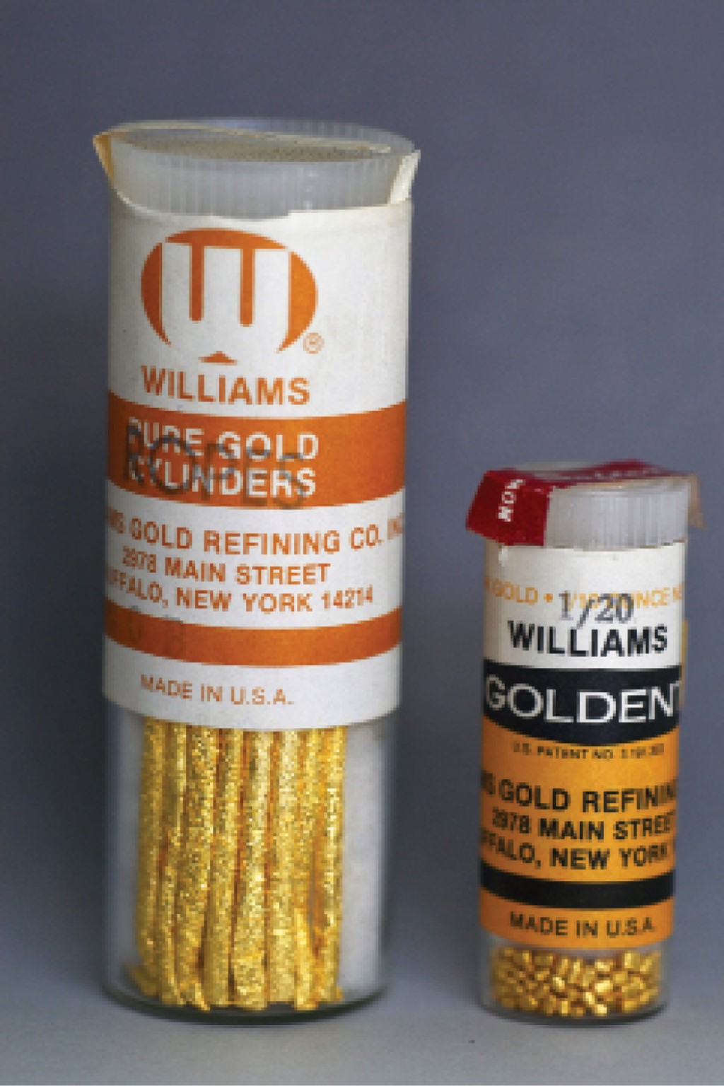 El Dr. Lloyd Baum y el Dr. Melvin R. Lund desarrollaron a principios de los años 60 un tipo de oro cohesivo (Goldent) que facilitaba mucho el manejo del metal, principalmente en el atemperamiento y en la colocación en la cavidad. Es un tipo de oro en polvo recubierto con oro en hoja que permite una buena compactación de toda la porción llevada a la cavidad, sin perder control en el condensado.14