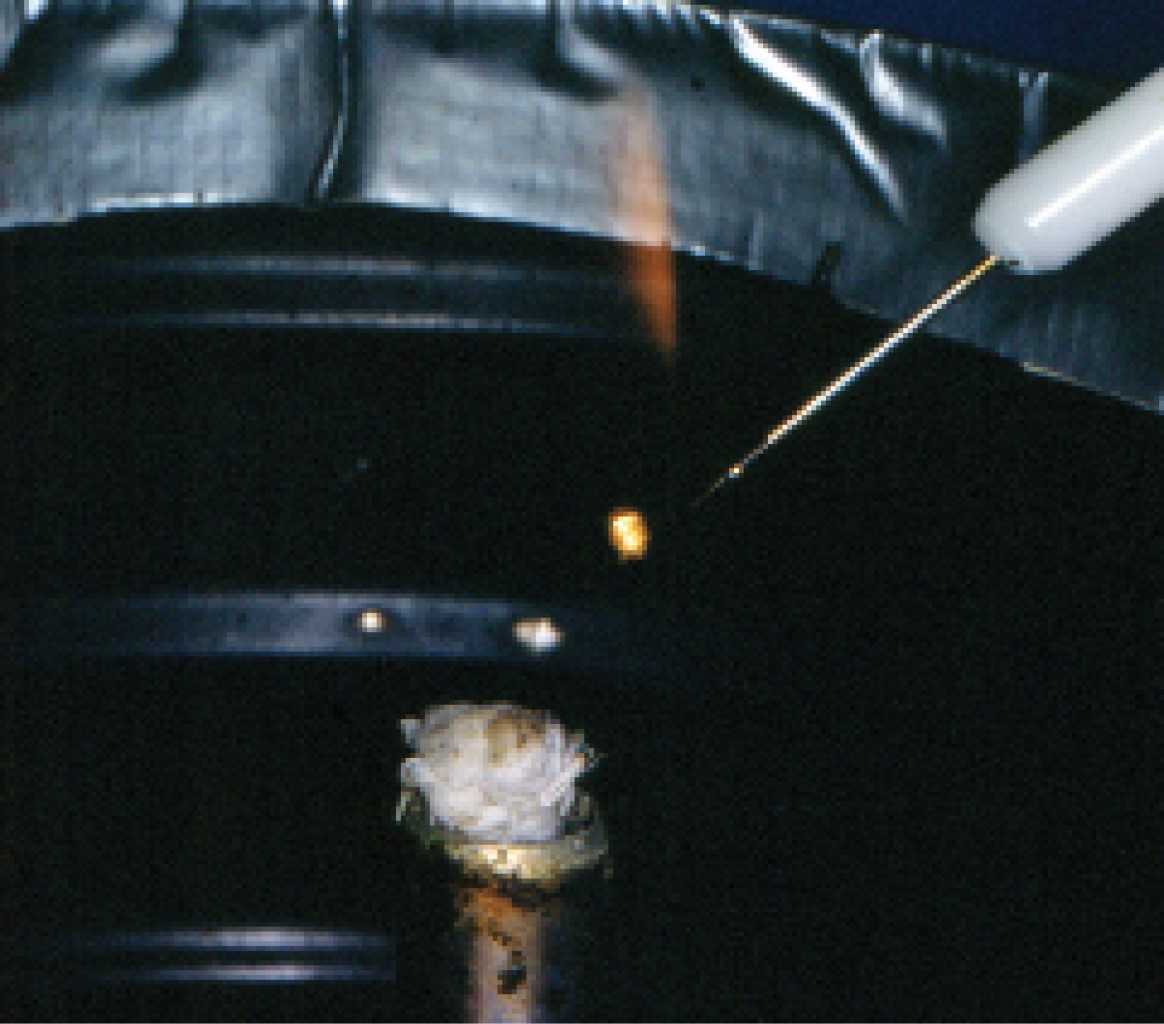 Cada porción del oro, sea grande o pequeña, debe pasar por este proceso de "atemperamiento" o descontaminación y la mejor forma de hacerlo es utilizando el instrumento más recomendado por el fabricante del oro o en su defecto, emplear un pequeño explorador biangulado muy afilado y fino. Algunos autores consideran que las porciones tratadas del oro, además de descontaminadas, también son esterilizadas.10-12 Y recomiendan el uso preferente del instrumento del fabricante sobre el uso de un explorador, por ser éste de níquel-cromo y porque normalmente los exploradores son fabricados de acero al carbón, que al ser pasados por el calor de una flama pueden generar contaminación en el oro.