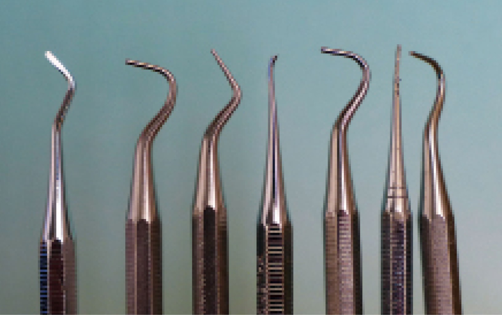 Es importante tener un buen kit de instrumentos para su colocación, condensación, bruñido y terminado (Figura 9). No cualquier instrumento puede utilizarse adecuadamente sobre la superficie del oro cohesivo. En la condensación, o más bien llamada compactación, es muy importante seguir un orden con uniformidad sobre cada partícula antes de continuar con la siguiente porción para evitar defectos internos que se pueden transferir y mostrarse en la superficie.1,12,14 La idea de seguir ese orden, además de facilitar el poder generar la ligera sobreobturación deseada, va a permitir bruñir adecuadamente el oro y facilita desarrollar el contorno natural de la superficie del diente y la localización precisa de los márgenes de la preparación de la cavidad (Figura 10).