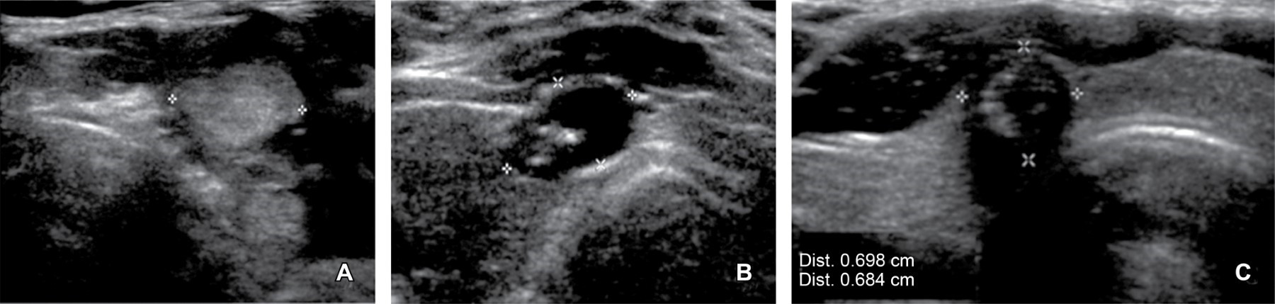 Ultrasonográficamente, el dato de mejor pronóstico es el tamaño menor de 10 mm y los datos asociados a la apariencia de mayor malignidad son el tamaño mayor a 10 mm, forma más alta que ancha, extensión extratiroidea y metástasis a ganglios linfáticos regionales.13