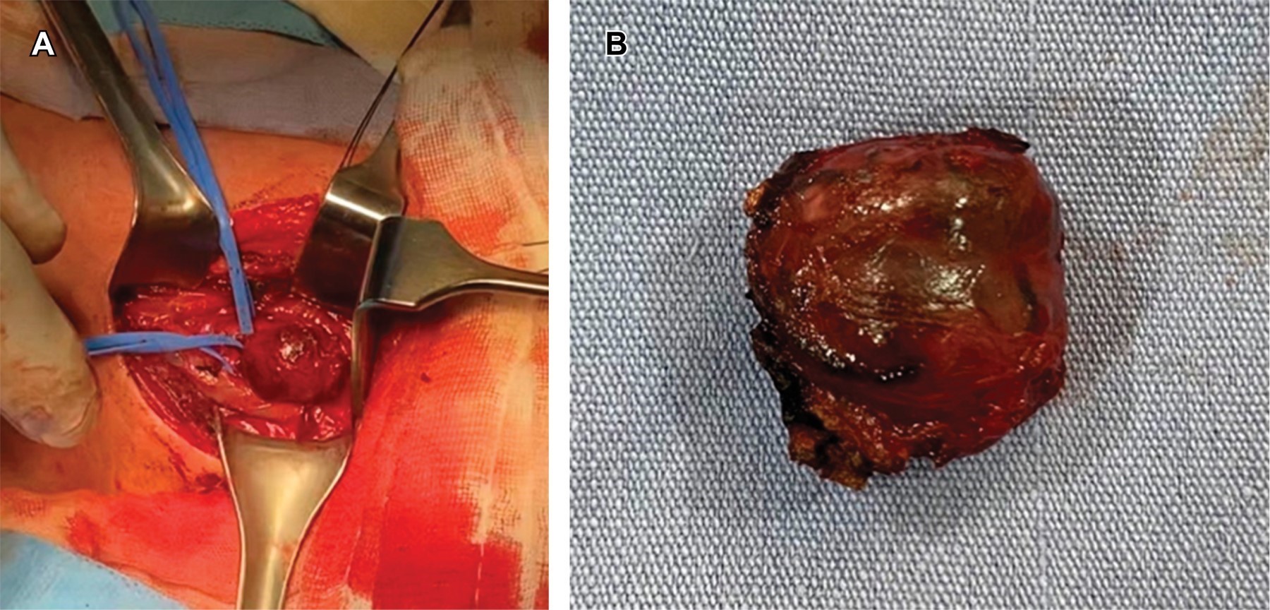 En otro punto y como lo describe la bibliografía internacional, por ejemplo, el artículo realizado por Toranzo Fernández y colaboradores, en lesiones mayores de 2 cm se recomienda embolización preoperatoria con la finalidad de reducir el tamaño y vascularidad, y con ello mejorar la visibilidad en el campo quirúrgico, disminuir el sangrado y el riesgo de lesión a estructuras vasculares y nerviosas.5