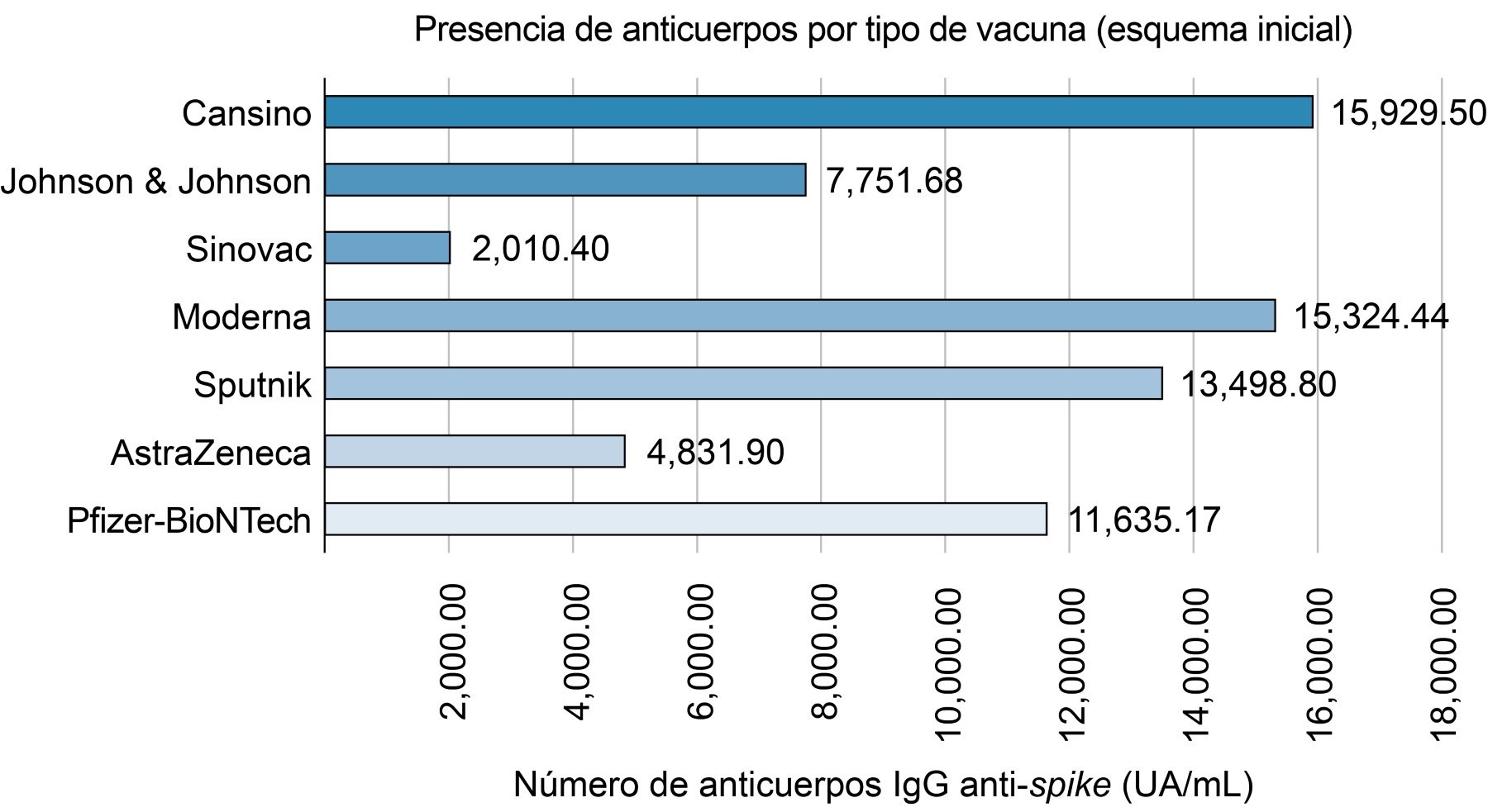 La cantidad de anticuerpos otorgados por cada marca de vacuna como esquema inicial se observa en la Figura 1.
