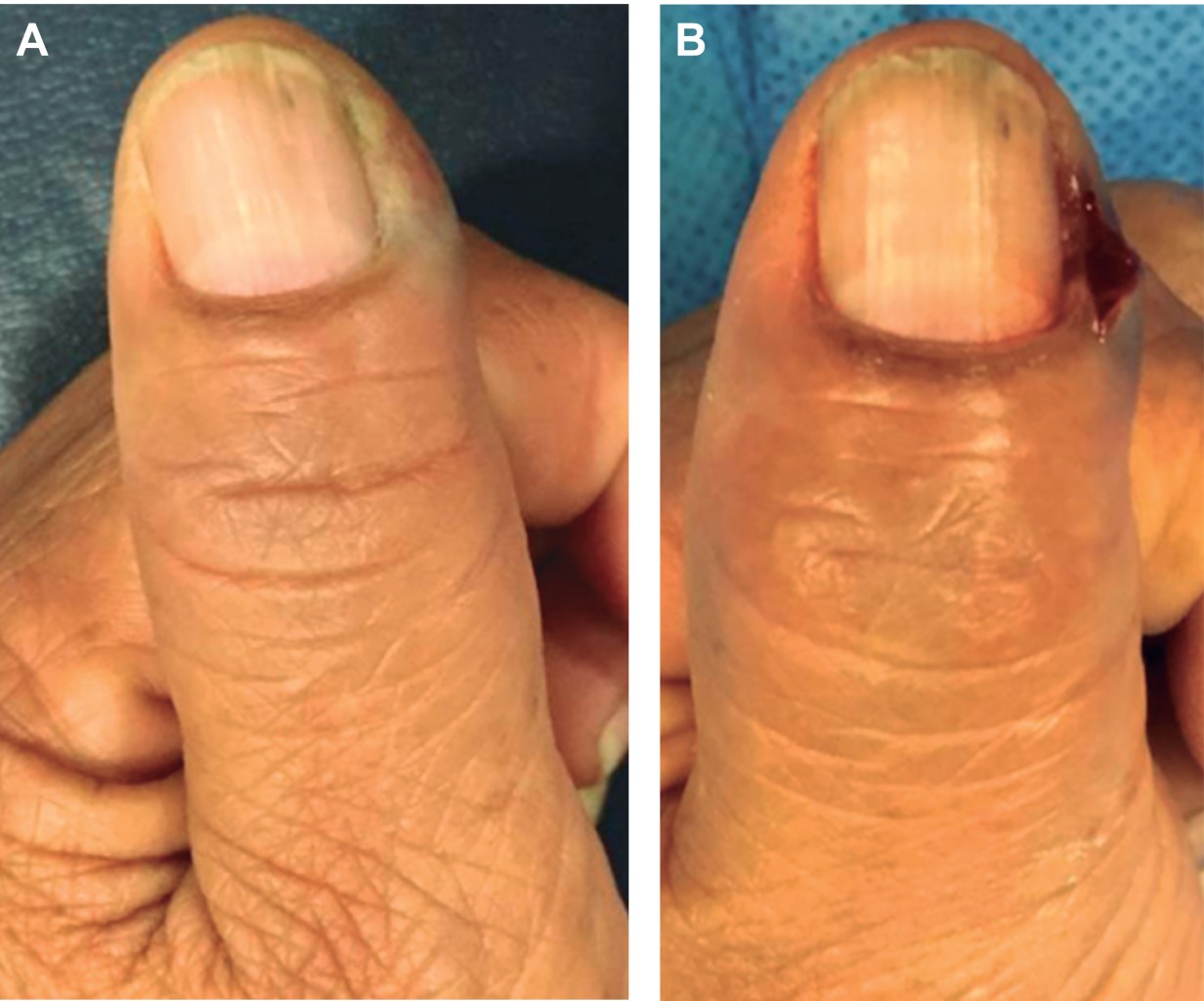Se trata de un pliegue de tejido blando alrededor de la uña por la inoculación bacteriana o por un cuerpo extraño que ocasiona la rotura de la barrera entre el pliegue ungueal y la placa ungueal (Figura 1). El microorganismo más frecuente es S. aureus.7