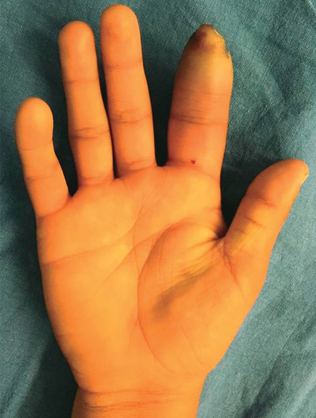 La infección de la región tenar es la infección más frecuente del espacio profundo, causa edema importante con dolor intenso a la palpación, dejando el pulgar en abducción y dificultando el movimiento de oposición.17