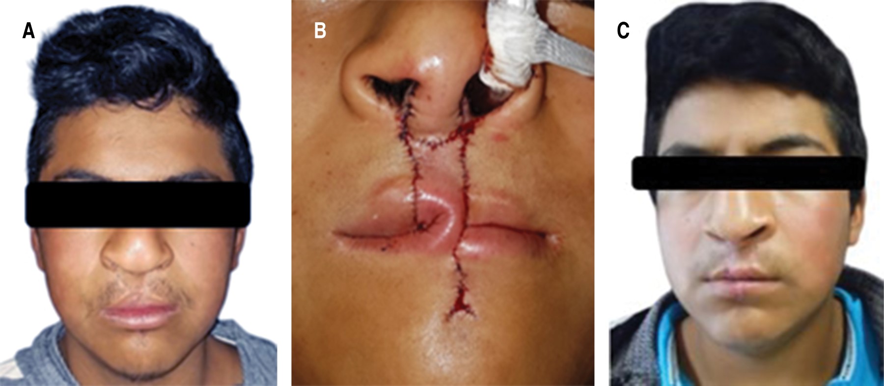 El labio superior e inferior son unidades anatómicas claramente prominentes del tercio inferior de la cara. La reconstitución de estas estructuras es de importancia crítica en la competencia oral, la articulación y la forma facial. No es raro ver pacientes con secuelas como deformidades nasales como labio superior con tensión, prolabio corto y/o ancho con falta de definición de arco de Cupido y filtrum, insuficiencia bermellón central, punta nasal deprimida, ala ancha, fosas nasales grandes y columela corta; estos defectos pueden provocar alteraciones importantes en la función y apariencia de la zona afectada, y son responsables de la calidad de vida potsquirúrgica de los pacientes. Por estas razones, la reconstrucción funcional con restauración estética, de los defectos del labio presenta un desafío importante para el cirujano reconstructivo.1,2
