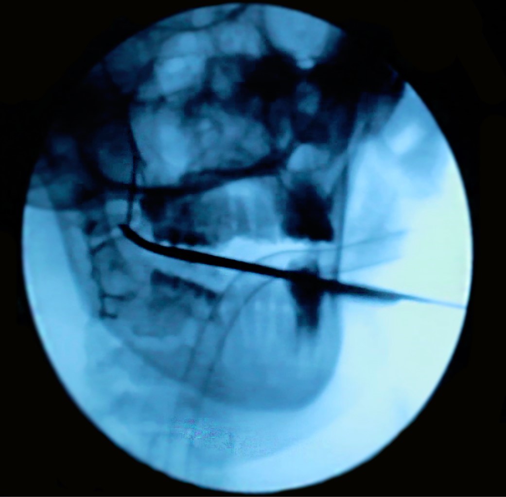 El propósito de la presentación del caso es mostrar el retiro exitoso mediante fluoroscopia de un CE situado en la FP, el cual generaba limitación en la apertura bucal.