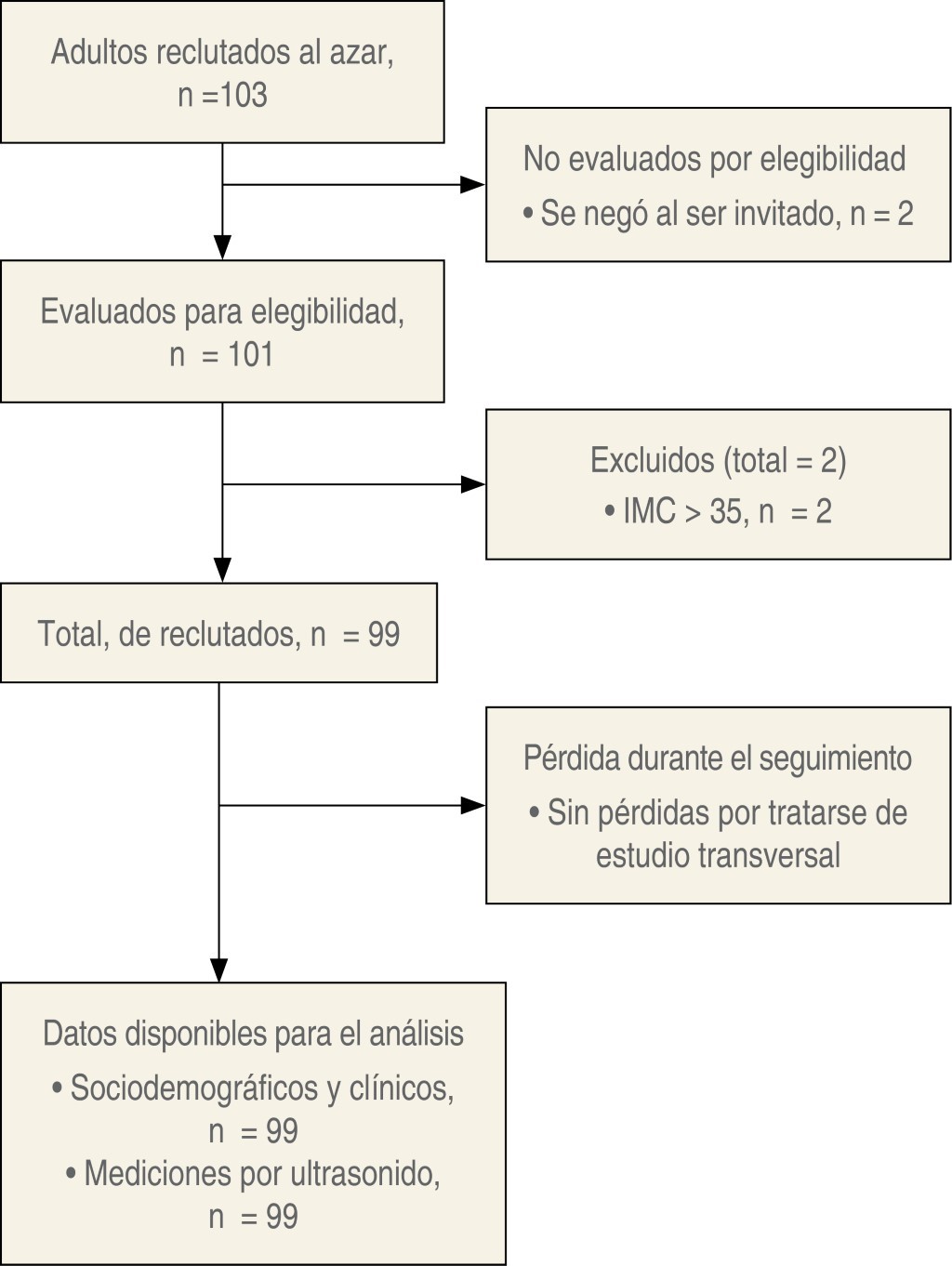 Se utilizó un equipo de ultrasonido GE MEDICAL SYSTEMS Co. LTD NO.19 con un transductor lineal de alta frecuencia (8-18MHz); se seleccionó la extremidad a estudiar de manera aleatorizada.