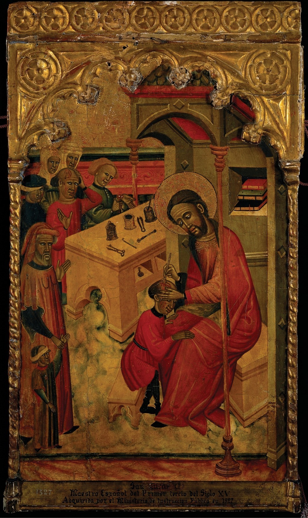 Existen pocos cuadros referentes a San Lucas como médico, uno de ellos se encuentra en el Museo del Prado y es atribuido a Juan de Sevilla con el nombre de San Lucas, que lo presenta practicando una cirugía sobre la cabeza. Se hace referencia a la actividad médica de San Lucas y el análisis del cuadro.INTRODUCCIóN