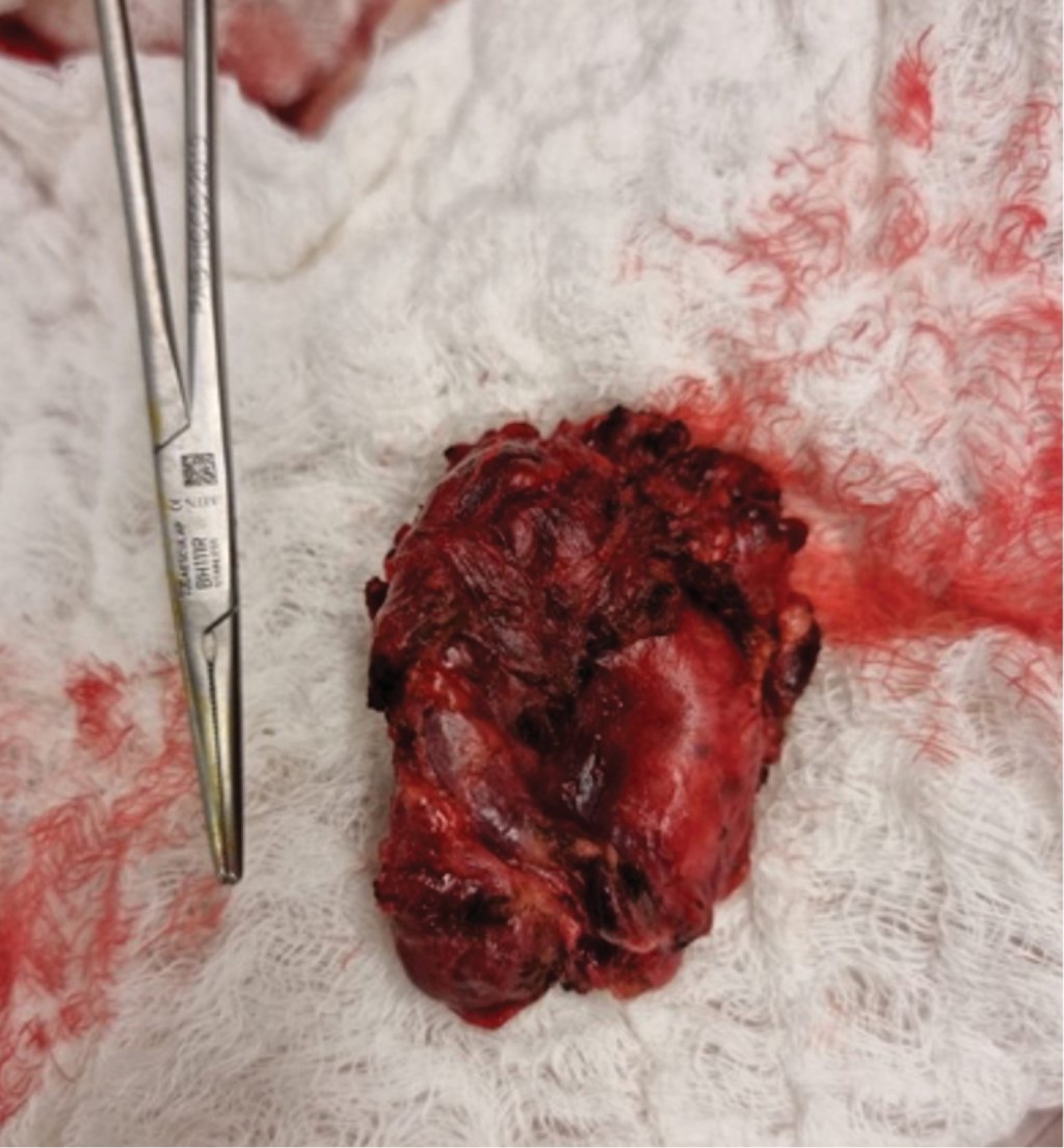 Se logra ingresar a espacio carotídeo desbridando fascia pretraqueal, donde se observa QB encapsulado y se realiza su enucleación quirúrgica sin complicaciones (Figuras 3 y 4).