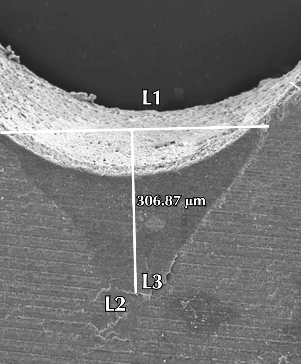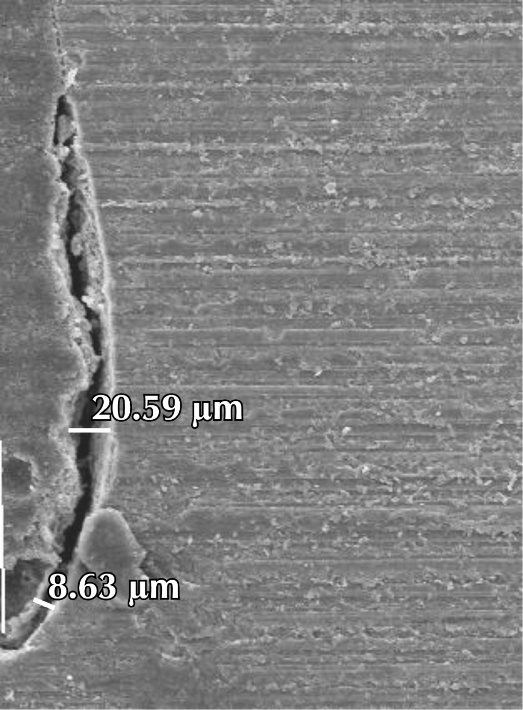 Considerando a la adaptación como el grado de aproximación del material a las paredes del surco, se midió en µm la distancia de dicha interfase (Figura 2).