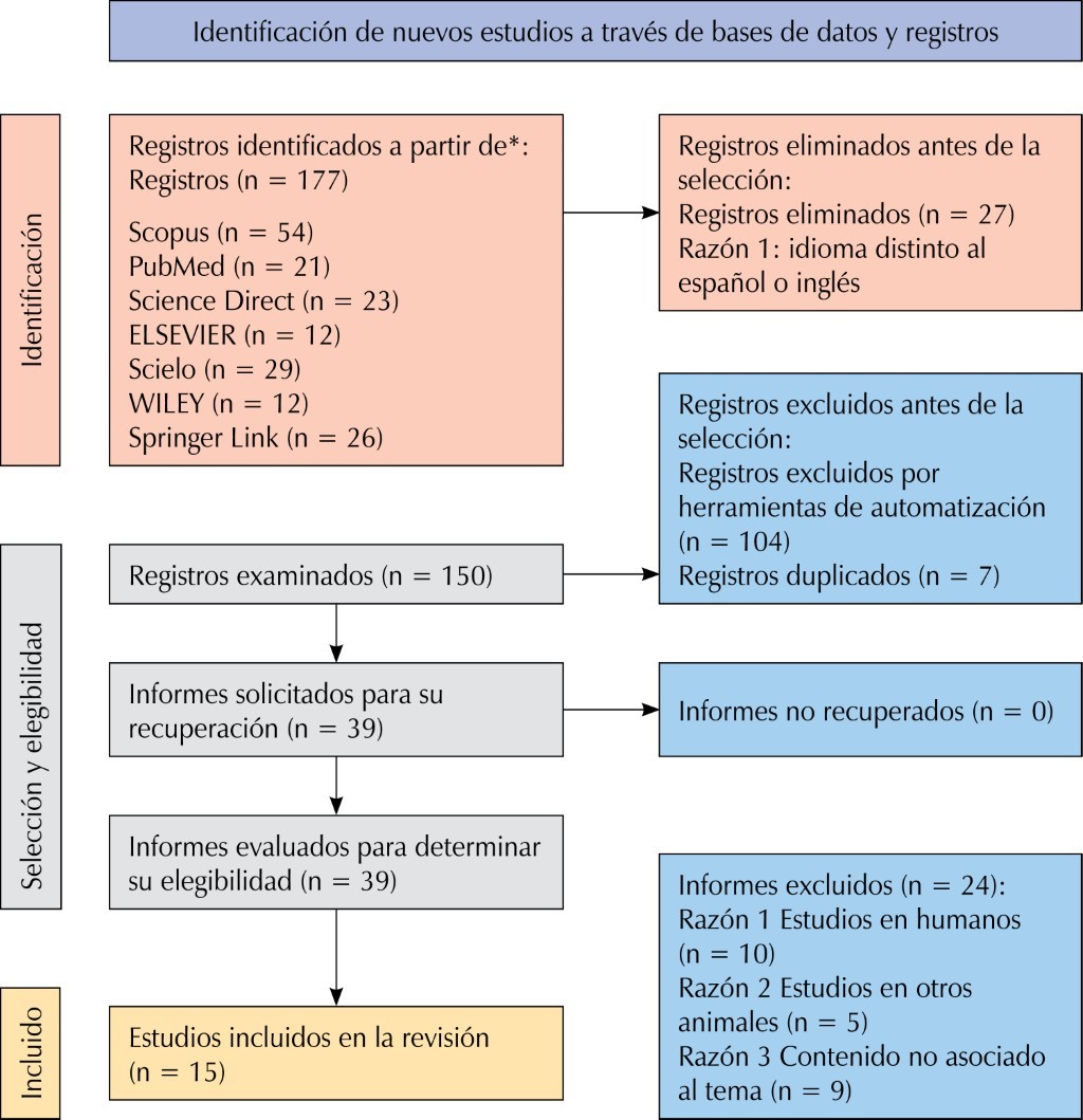 En la búsqueda bibliográfica acorde a PRISMA,13 se identificaron 177 artículos, de los que 15 cumplieron con los criterios de selección (Figura 2).