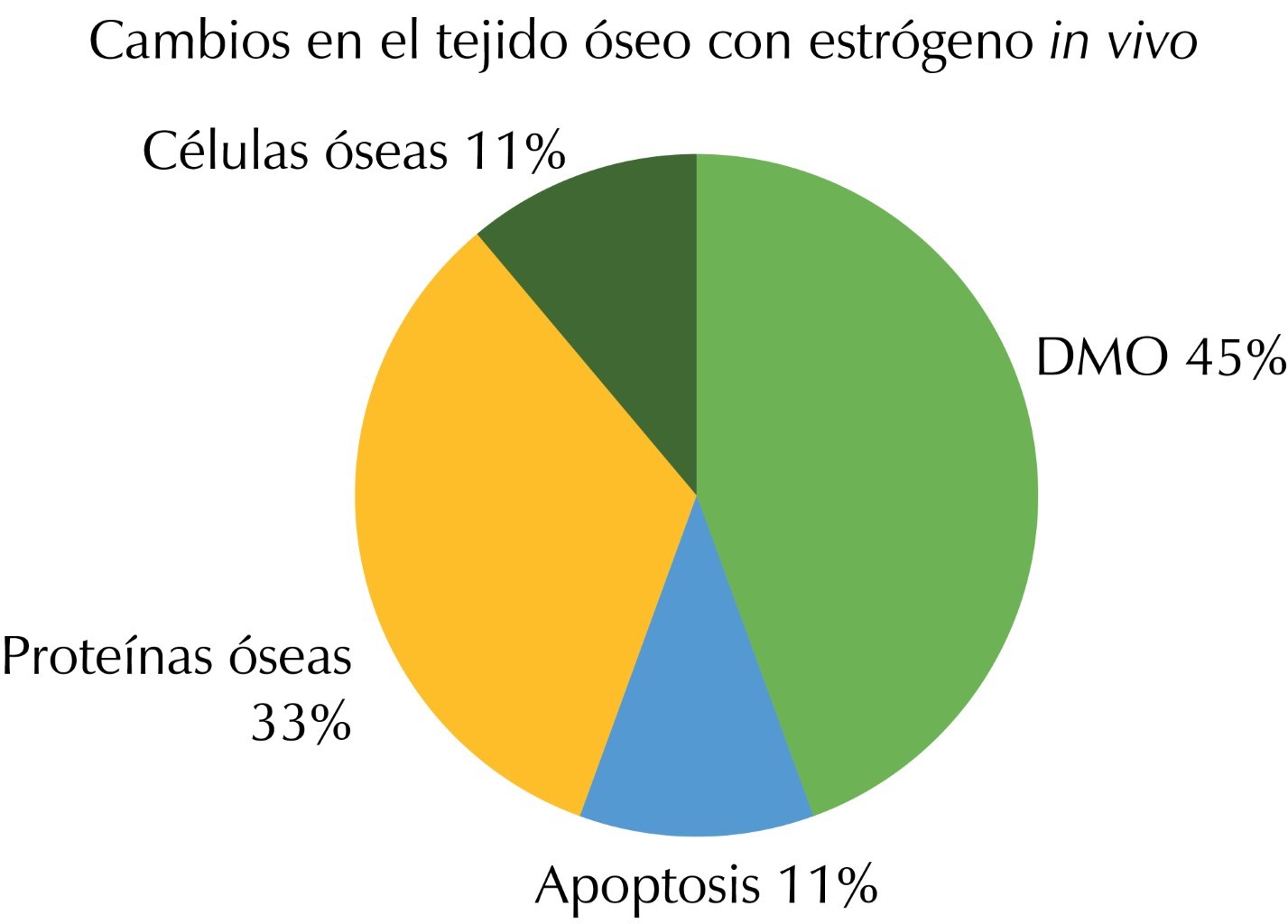 Los estrógenos poseen un doble efecto en el metabolismo del hueso: favorecen la formación ósea y disminuyen la resorción ósea. La investigación de años recientes ha verificado que los estrógenos tienen la capacidad de inducir un aumento en los niveles de osteoprotegerina (OPG). Esta proteína la expresan los osteoblastos en tanto cumplen la función de inhibir la resorción del hueso.8 Es por esto que, la deficiencia de estrógenos ejerce un factor perjudicial importante en la pérdida ósea y, en consecuencia, se vincula a diversas enfermedades de este tejido.4,9-11
