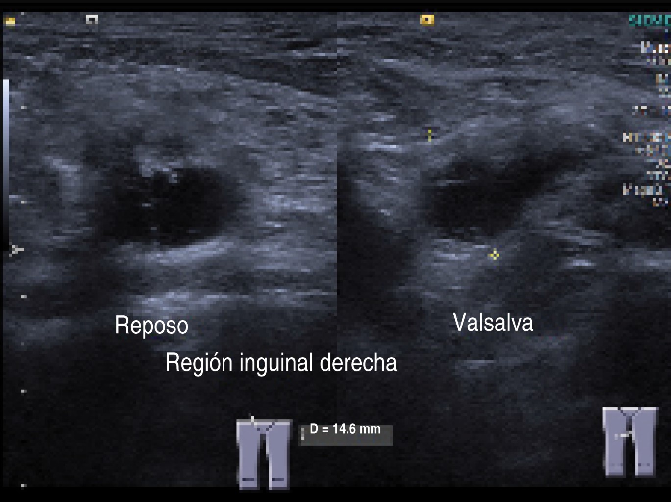 Los quistes del canal de Nuck son patologías poco frecuentes, siendo un diagnóstico diferencial de las hernias inguinales, por lo que deben tomarse en cuenta en las pacientes que presenten abultamientos en esa región anatómica, sobre todo si ya han sido evidenciados a través de algún método de imagen como ultrasonido o tomografía, tomando en cuenta los sitios probables de aparición (Figura 6).