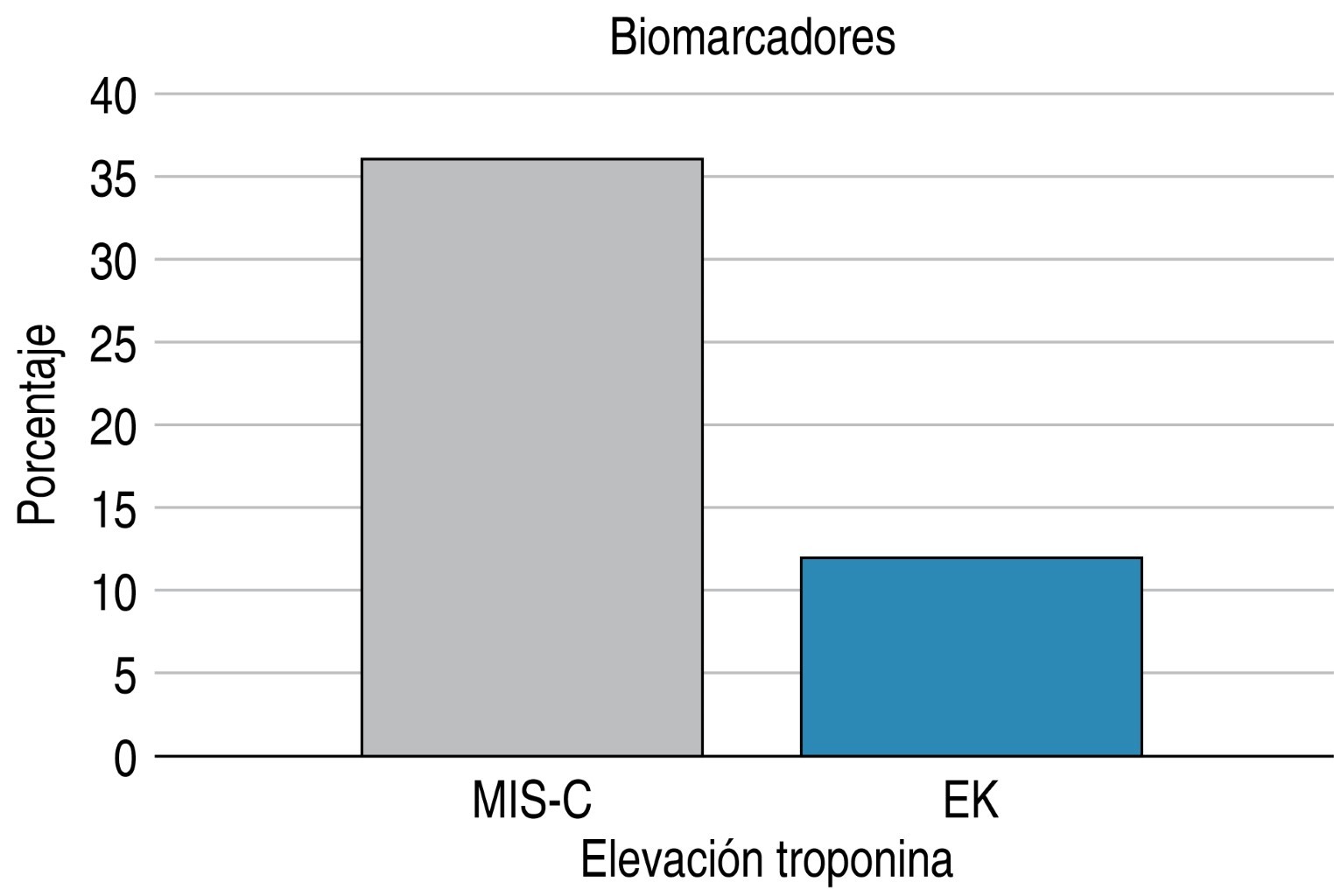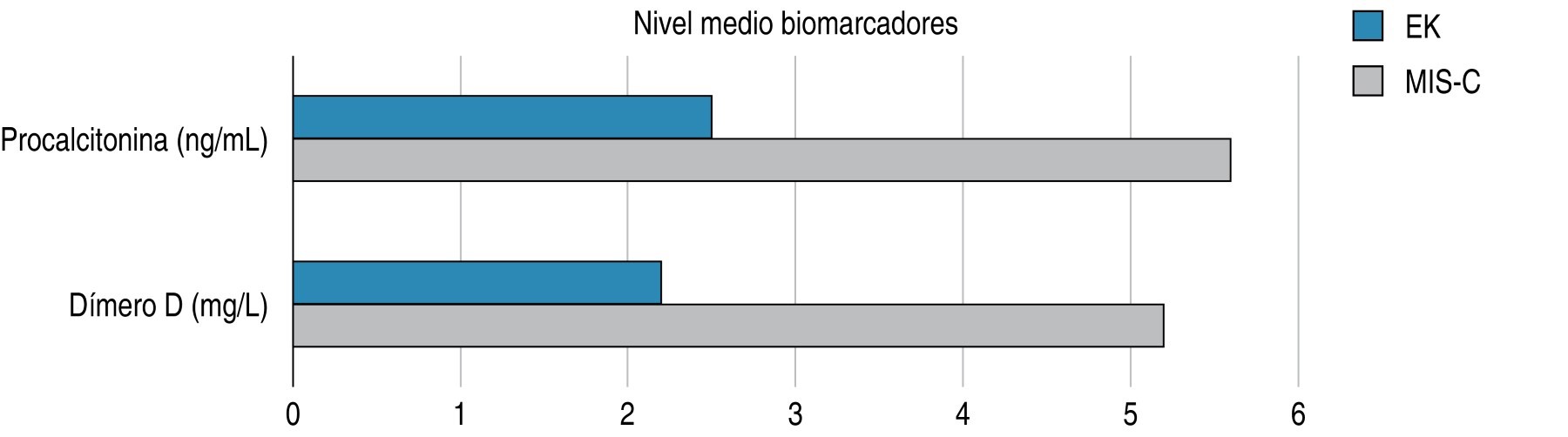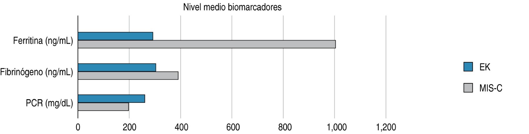 En comparación con los pacientes que tenían la EK, los pacientes con MIS-C presentaron niveles más altos de fibrinógeno, ferritina, PCR, pro-BNP, así como un conteo menor de plaquetas y linfocitos. De igual forma, hubo un mayor porcentaje de la elevación de troponina en el grupo de MIS-C, algo que fue similar al estudio de Godfred-Cato y colegas, quienes encontraron niveles de biomarcadores más elevados en pacientes con MIS-C que en pacientes con EK.6