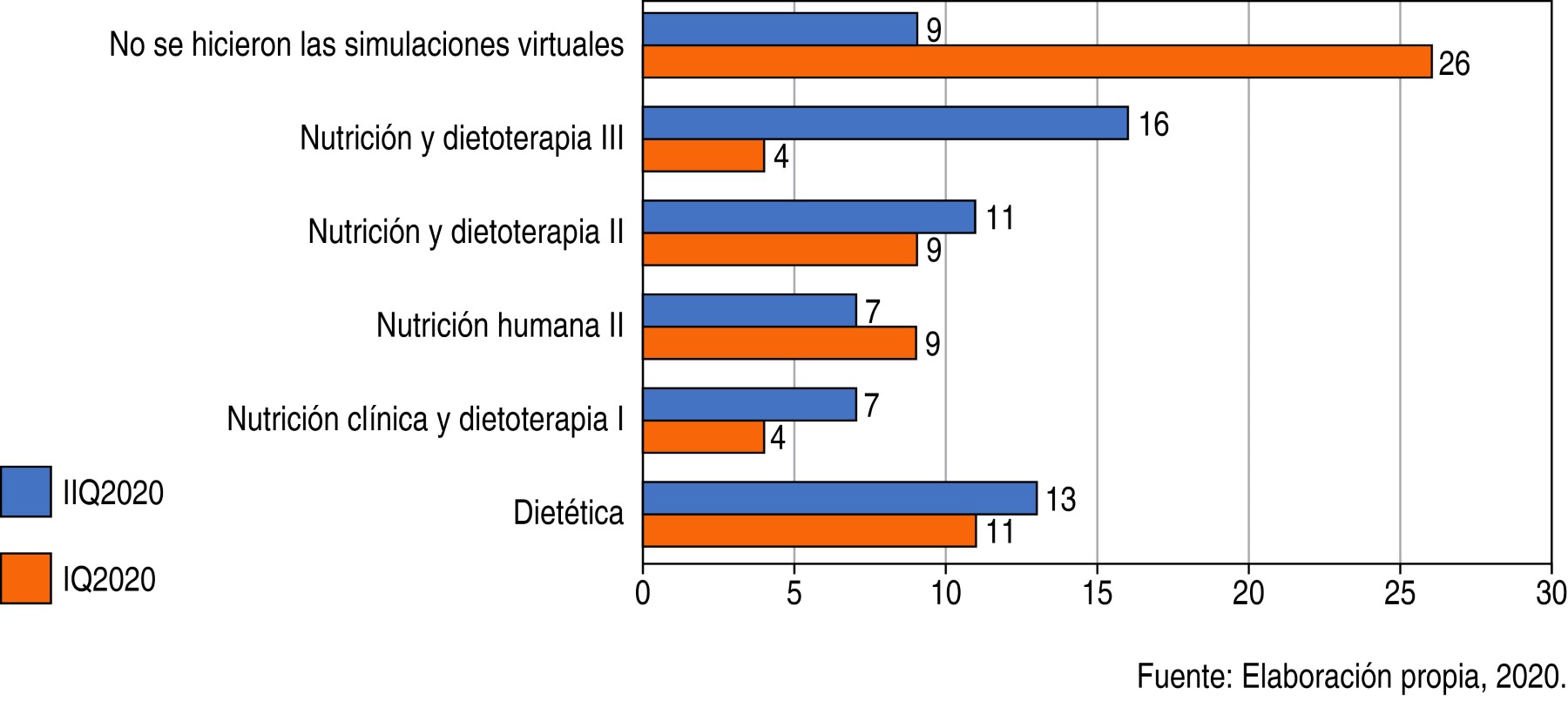 La adopción de la simulación en esta modalidad ha resultado exitosa a pesar de la transición acelerada, producto de las directrices emitidas para contener la propagación de la COVID-19, lo cual ha permitido la innovación en la carrera de Nutrición que ha resultado en estrategias adecuadas para el fortalecimiento del aprendizaje de los estudiantes.