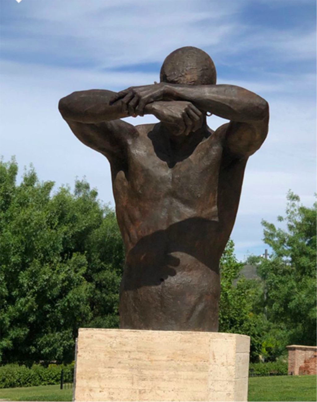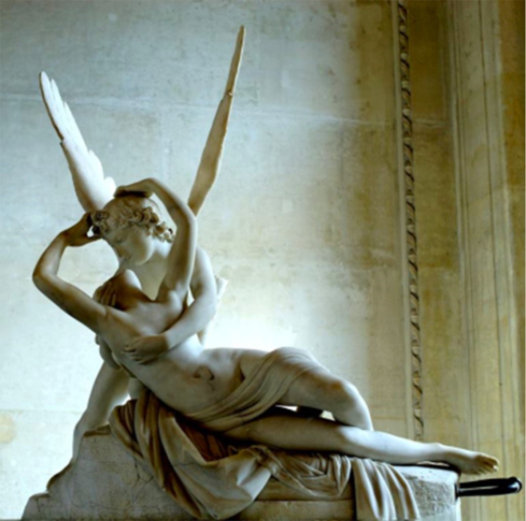 En la escultura destaca la obra de Antonio Canova (1757-1822), escultor italiano. En su escultura Psique reanimada por el beso de amor, el amor entre Eros/Cupido y Psique, el abrazo se entrelaza con el beso (Figura 5). En el Abrazo vacío, Sergio del Amo, escultor jalisciense, rinde homenaje a los fallecidos durante la pandemia de COVID-19, representa la soledad, el gran vacío que deja la pérdida del ser querido, la desesperanza, la tristeza (Figura 6).