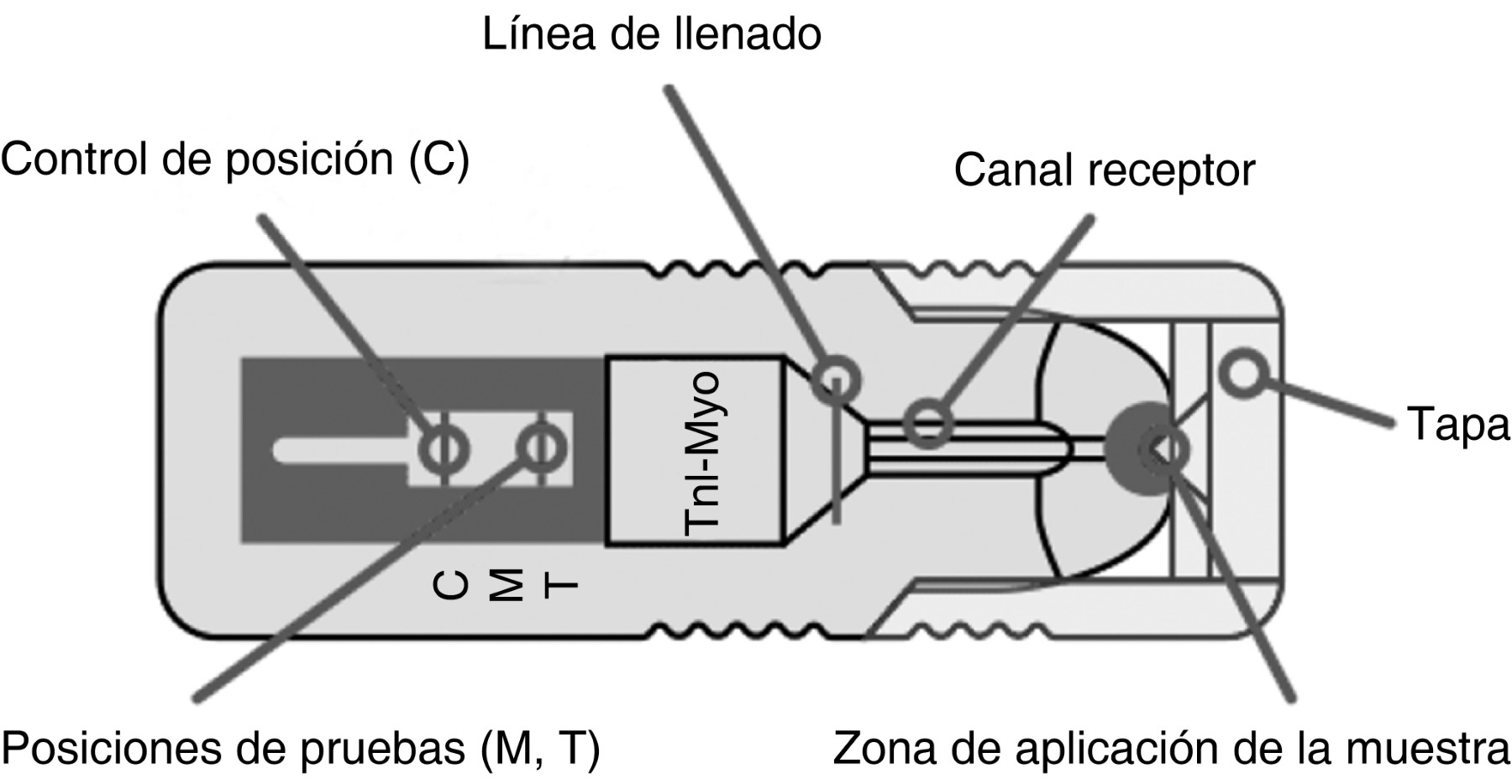 Introducción: el progreso de métodos de determinación y medición de troponinas cardiacas con alta sensibilidad y especificidad ha dejado mejorar el pronóstico de enfermos con cardiopatía isquémica. La prueba ZAP Tro/Mio es una prueba rápida que de manera cualitativa puede ayudar a diagnosticar IAM. La carcasa de prueba tiene: AC (anticuerpos) policlonales para Mio y Trop I, además de tinción fluorescente, una fase sólida y estabilizadores. Objetivo: comparar el resultado de la prueba rápida ZAP y troponina I sérica con el hallazgo de alteración cardiovascular en enfermos con dolor torácico. Material y métodos: estudio transversal, descriptivo y observacional en pacientes que acudieron al servicio de urgencias con dolor torácico. Se evaluó la concentración de troponina al ingreso hospitalario y se relacionó con los resultados de la prueba ZAP. Aspectos éticos: esta investigación se llevó a cabo bajo los principios éticos. Declaración de "Helsinki de la AMM", principios bioéticos para las investigaciones médicas en personas. El protocolo se efectuará cumpliendo las recomendaciones establecidas en la NOM-087-ECOL-SSA1-2002. Se respetará la confidencialidad de los datos de los pacientes. Análisis estadístico: se aplicó la prueba de Kolmogorov-Smirnov para determinar la distribución de las variables cuantitativas, la prueba de χ2 para relacionar dos variables cualitativas, la prueba de t de Student para comparar dos promedios y la ANOVA para comparar más de dos promedios. Se tomó un valor de p > 0.05 como significancia estadística. Resultados: se incluyeron 115 enfermos que solicitaron consulta a urgencias con dolor torácico. La frecuencia de este diagnóstico fue de 63.5% (73 casos) en el sexo masculino y 36.5% (42 casos) en el sexo femenino. De 100% de los pacientes con dolor torácico, sólo en 25.2% (29 casos) se diagnosticó una alteración cardiovascular y en 74.8% (86 casos) se identificó otro padecimiento. Conclusiones: la prueba rápida ZAP se relaciónó con el hallazgo cardiovascular y observamos que los pacientes con prueba ZAP positiva tuvieron 15 veces más riesgo de que su diagnóstico fuera una patología cardiovascular.ABREVIATURAS:
