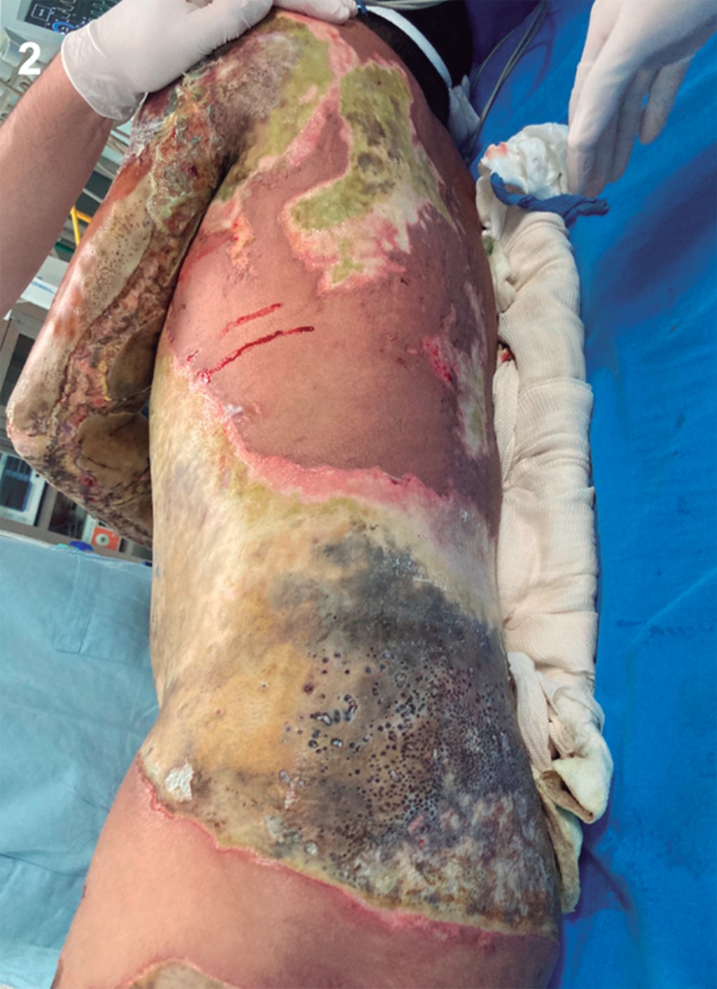 Existe controversia con respecto al momento y tipo de tratamiento subsecuente en lesiones extensas que involucran las distintas capas de la piel en pacientes con complicaciones agregadas y datos de inestabilidad hemodinámica como el gran quemado, por lo que se requieren más investigaciones que ofrezcan métodos estandarizados basados en evidencias.15