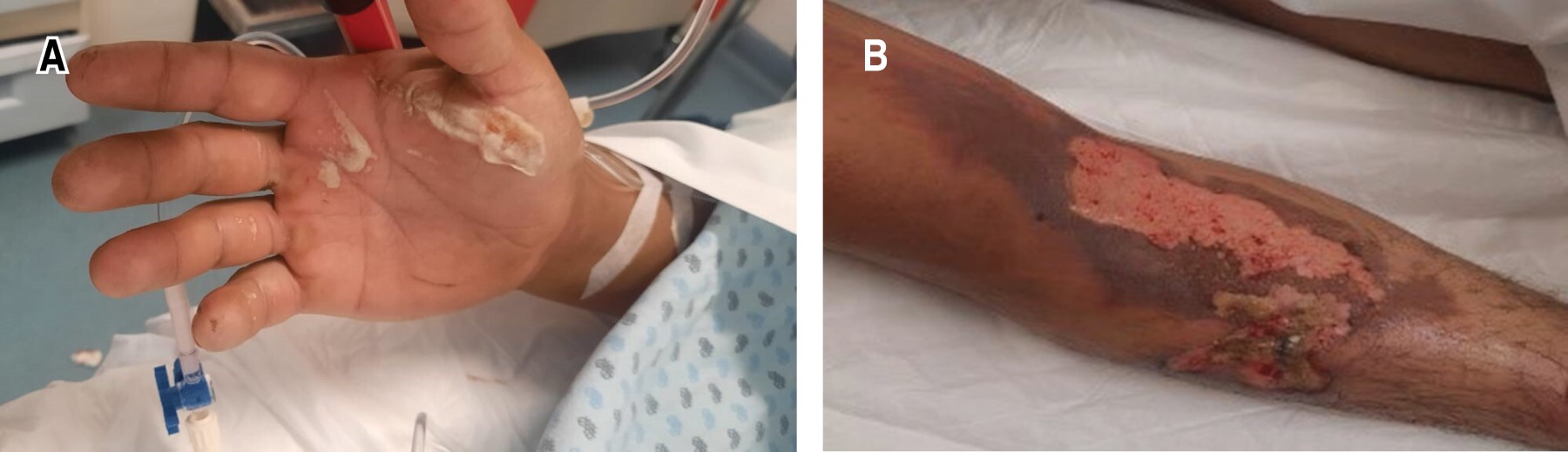 Se trata de paciente masculino de 23 años de edad que acudió a nuestra unidad hospitalaria después de una caída de tres metros de altura, tras presentar quemadura por arco eléctrico, el paciente se desempeñaba como albañil. Durante su estancia se inició manejo de paciente quemado (Figura 1), de acuerdo a fórmula de Parkland, y se realizó manejo ATLS (Advanced Trauma Life Support), por lo que se solicitaron radiografías de serie de trauma debido a mecanismo de lesión.