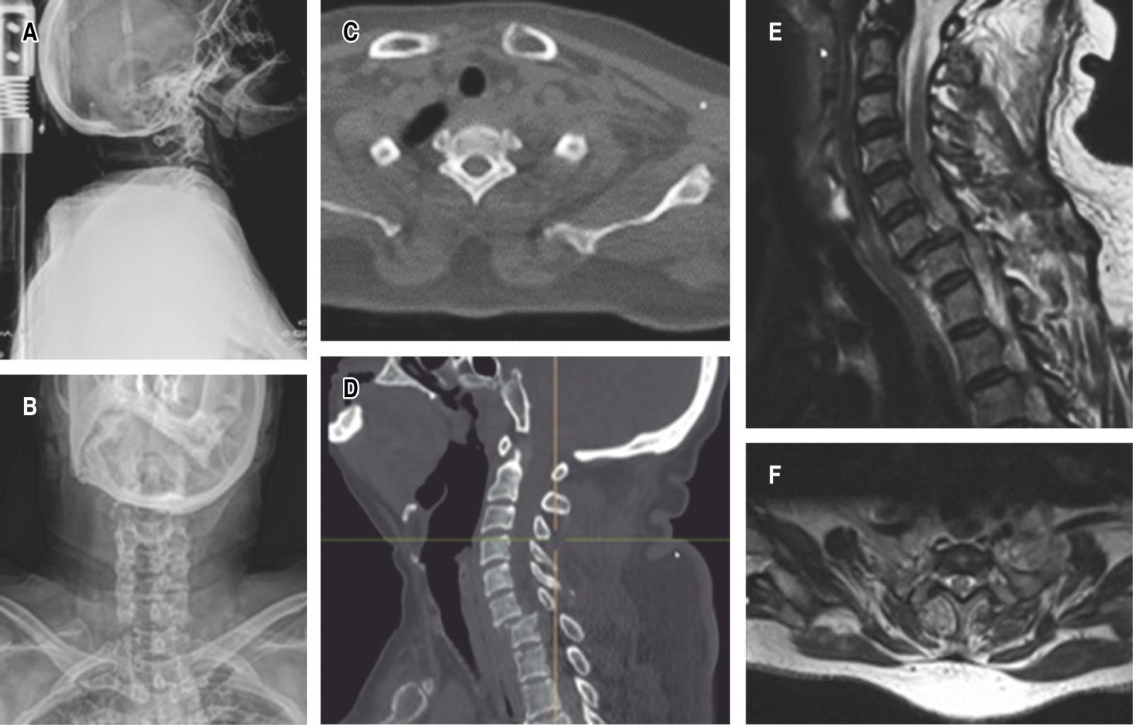 Actualmente el diagnóstico inicial de las lesiones de columna cervical consiste en considerar los signos y síntomas asociados en el interrogatorio y durante la exploración neurológica con apoyo de la escala de la Asociación Americana de Lesiones de la Columna (ASIA), junto con estudios de imagen; el uso de radiografías simples no descarta la patología cervical y la tomografía axial computarizada es el referente para el estudio de estas lesiones y para complementar posteriormente a la estabilización del paciente, con una resonancia magnética nuclear, principalmente para identificar alteraciones del complejo ligamentario posterior y de disco intervertebral. Descartar lesiones de la columna cervical es crucial para prevenir lesiones incapacitantes que puedan disminuir la calidad de vida del paciente.3,7,11-14