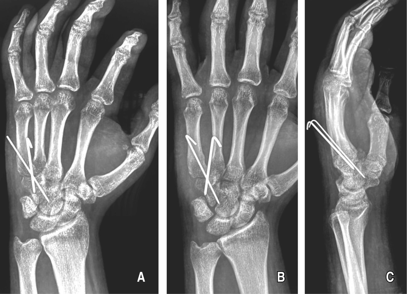 Se requiere fisioterapia de la articulación de la mano y la muñeca después de seis semanas de inmovilización para evitar la rigidez postoperatoria.