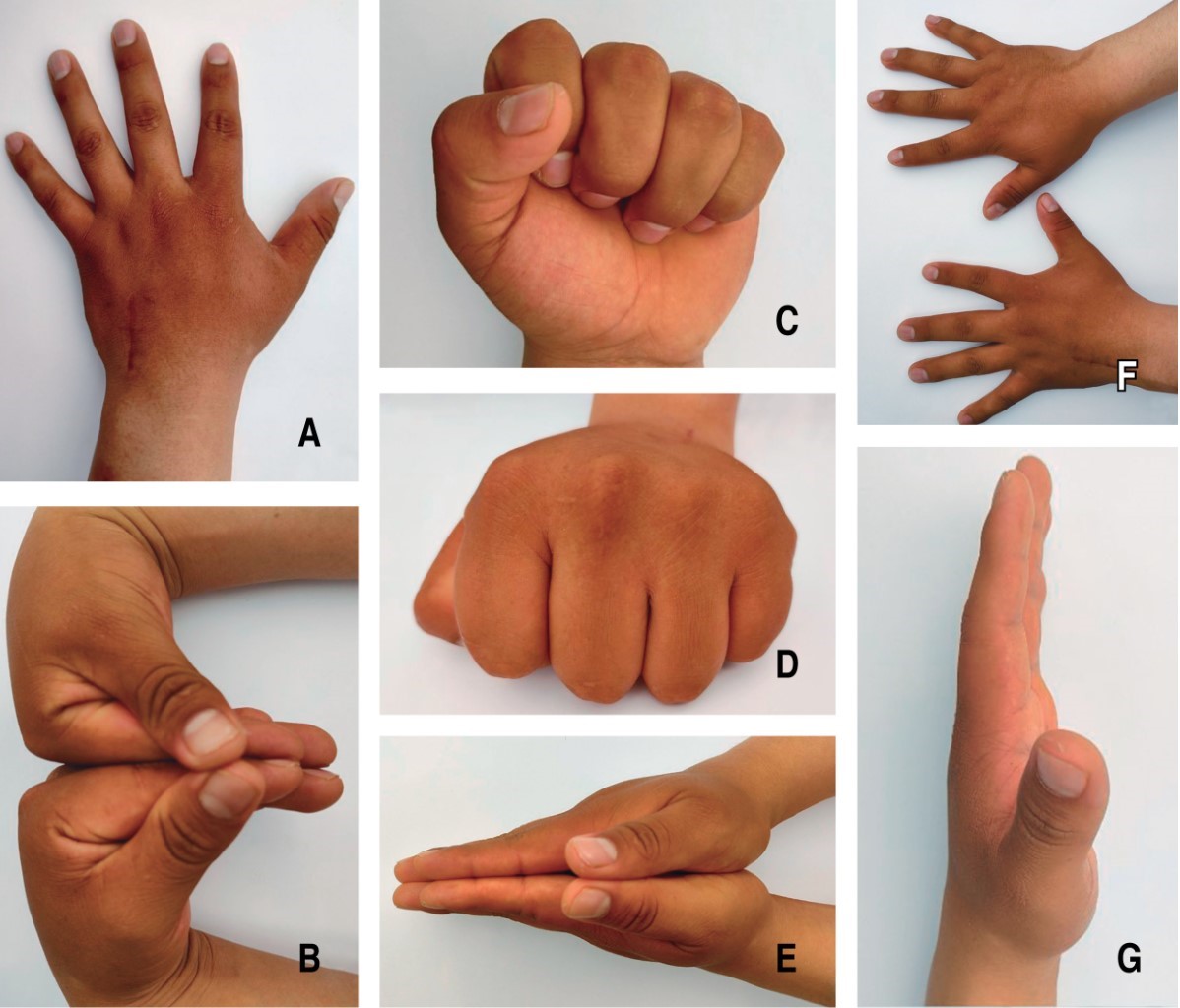 La exploración física predomina por aumento de volumen de la mano, dolor de la articulación carpometacarpiana, prominencia ósea, aplanamiento de la cabeza del metacarpiano, desviación o rotación de los dedos afectados, aunque en la mayoría de los casos no se registran lesiones nerviosas en la literatura, se tiene que realizar una exploración neurovascular meticulosa.1,15 Es tan importante el edema que presentan que la luxación puede quedar enmascarada por el proceso inflamatorio y tejido blando de la eminencia tenar.6,16