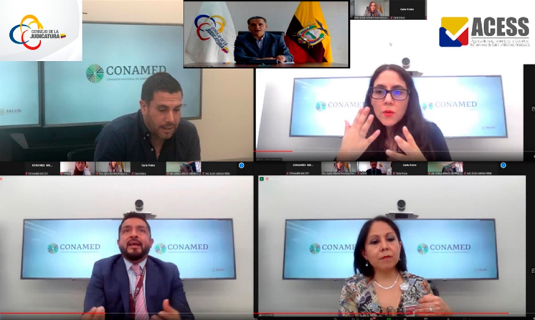 En marzo de 2023 se participó en el Primer Seminario Internacional "Mecanismos alternativos de solución de controversias: introducción a la mediación en los servicios de salud", el cual se realizó en conjunto con la Agencia de Aseguramiento de la Calidad de los Servicios de Salud y Medicina Prepagada (ACESS) y el Consejo de la Judicatura a través del Centro Nacional de Mediación de la Función Judicial, ambas instituciones de la Función Judicial del Gobierno de Ecuador. En este evento participaron más de 200 profesionales y sirvió como un intercambio de experiencias respecto de la impartición de justicia a través de MASC, en el cual la CONAMED compartió su experiencia institucional, posicionándose a la vanguardia y distinguiéndose de aquellas prácticas que se llevan a cabo en otros lugares de América Latina (Figura 6).