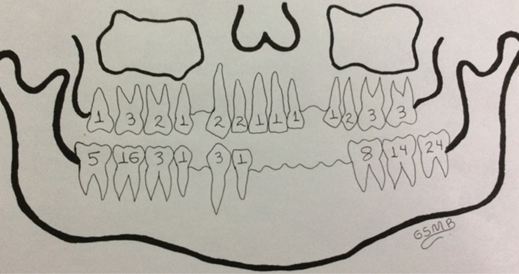 Los órganos dentarios causantes de AO se muestran en la Figura 1 y las regiones afectadas en la Figura 2.