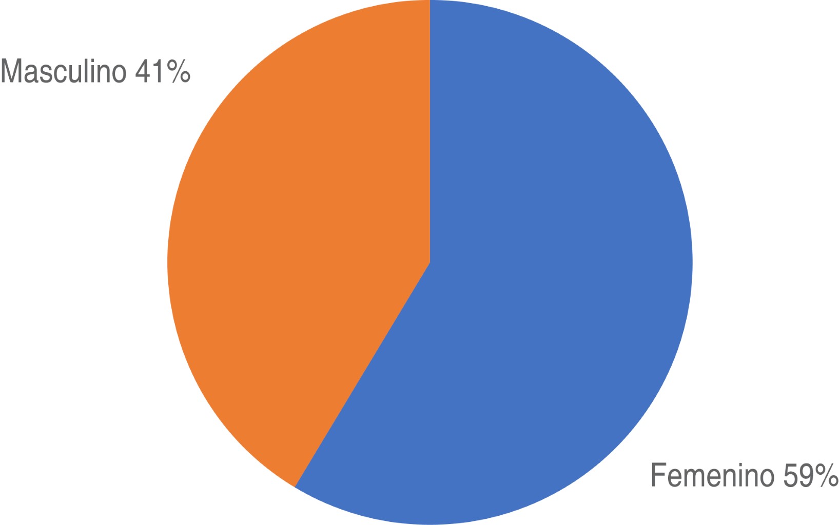 Se realizaron 153 cuestionarios, correspondientes a 51 personas, donde 29 cumplieron con los requisitos de admisión; las exclusiones del presente estudio fueron dadas por enfermedades autoinmunes, consumo de fármacos para el dolor y antecedentes de cirugías. El porcentaje de los participantes, según su sexo, corresponde 59% al femenino y 41% al masculino (Figura 1).