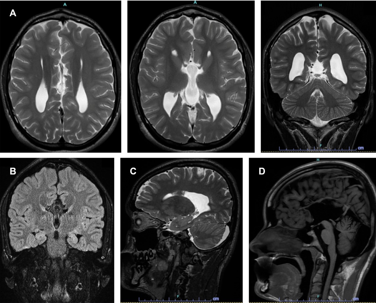 Paciente masculino de 20 años, que acude para valoración médica debido a que presenta crisis convulsivas, por lo cual se le solicitó RM (Figura 1), la cual evidenció los hallazgos de colpocefalia con agenesia del cuerpo calloso.
