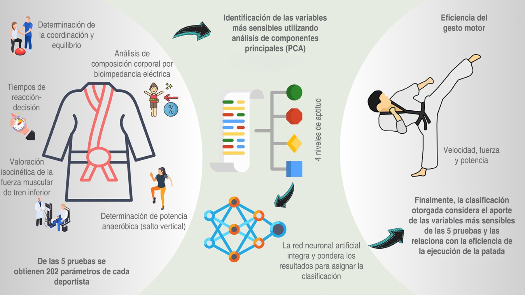 Para poder relacionar los resultados de las evaluaciones con la ejecución de la patada es necesario el uso de herramientas tecnológicas, desarrollar algoritmos capaces de aprender relaciones no lineales en los datos, con la capacidad para aprender patrones y relaciones complejas. Estas herramientas son útiles para clasificar a un deportista en diferentes niveles de aptitud física debido a su capacidad de aprendizaje, extracción automática de características, manejo de datos complejos, adaptabilidad y escalabilidad. Esto permite una clasificación novedosa, precisa y automatizada en comparación con otros enfoques.