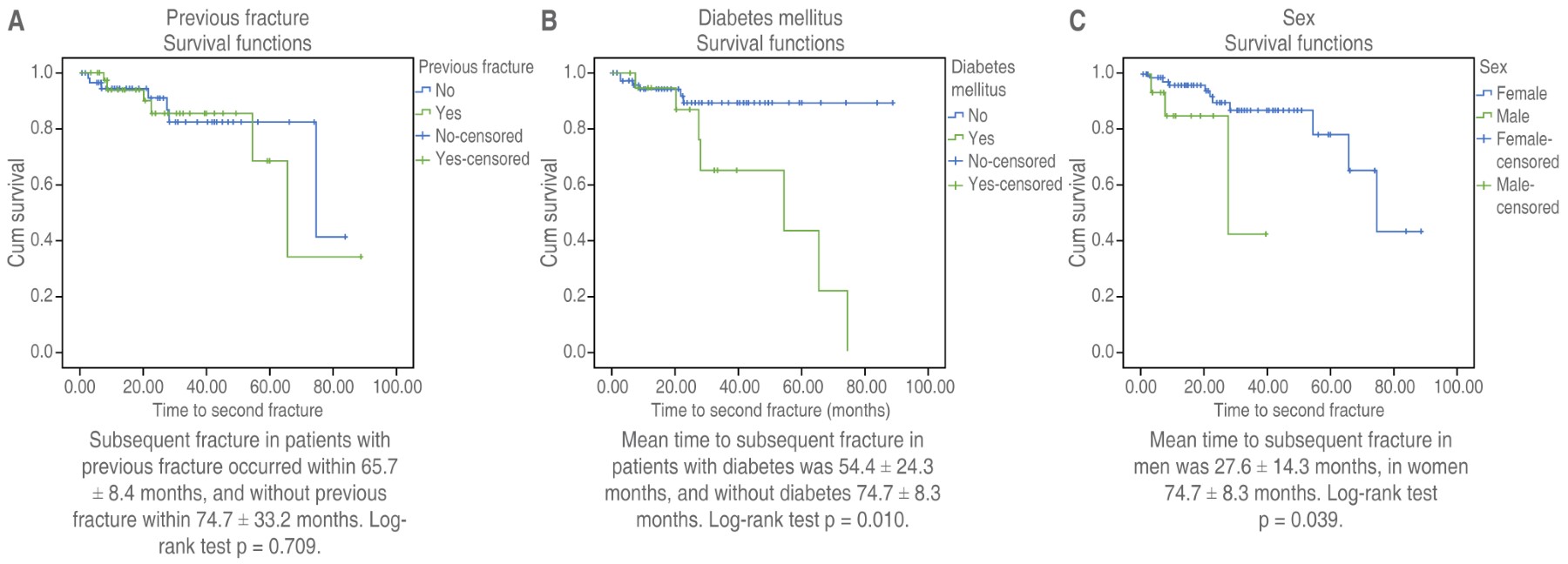 Los pacientes con diabetes tipo II tienen mayor riesgo de fracturas subsecuentes más allá del periodo de riesgo inminente: un análisis de supervivencia