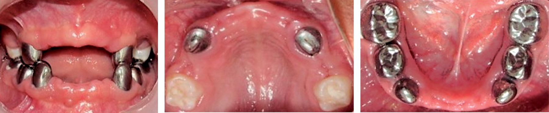 En primer lugar, se realizó inducción anestésica general, posteriormente se llevó a cabo el procedimiento quirúrgico (rehabilitación bucal): se hizo asepsia y antisepsia, luego se colocaron los campos quirúrgicos, el abrebocas y un aislamiento absoluto con dique de hule y grapas del número 14; entonces se procedió a realizar los tratamientos de operatoria, dentro de los cuales se efectuaron 10 extracciones (OD 54, 52, 51, 61, 62, 64, 72, 71, 81, 82), ocho pulpotomías (OD 53, 63, 75, 74, 73, 83, 84, 85), ocho coronas acero cromo (OD 53, 63, 75, 74, 73, 83, 84, 85) y dos resinas preventivas (OD 55, 65).
