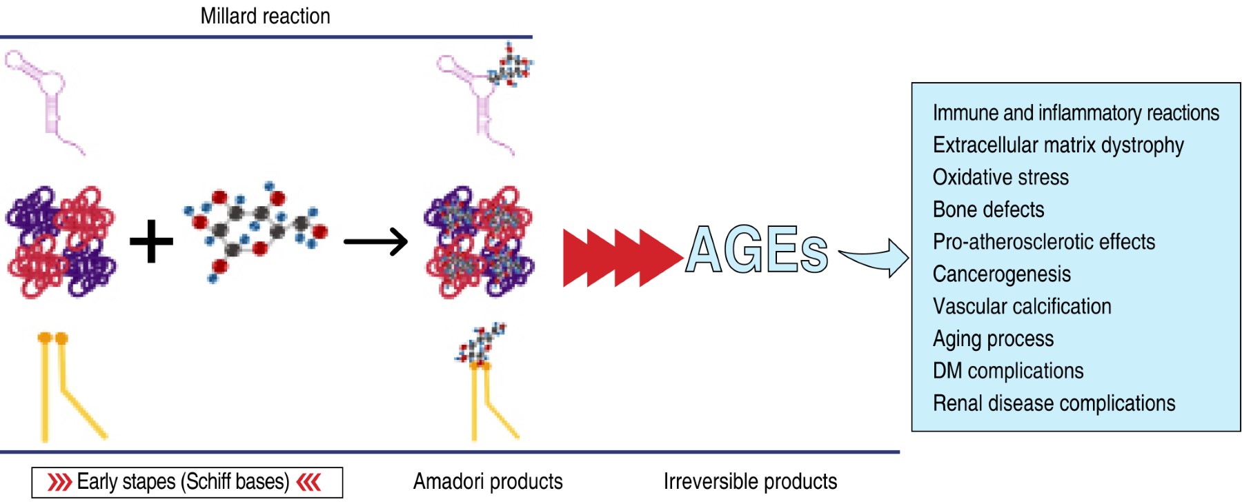 Asadipooya K, Uy EM. Advanced glycation end products (AGEs), receptor for AGEs, diabetes, and bone: review of the literature. J Endocr Soc. 2019; 3 (10): 1799-1818.