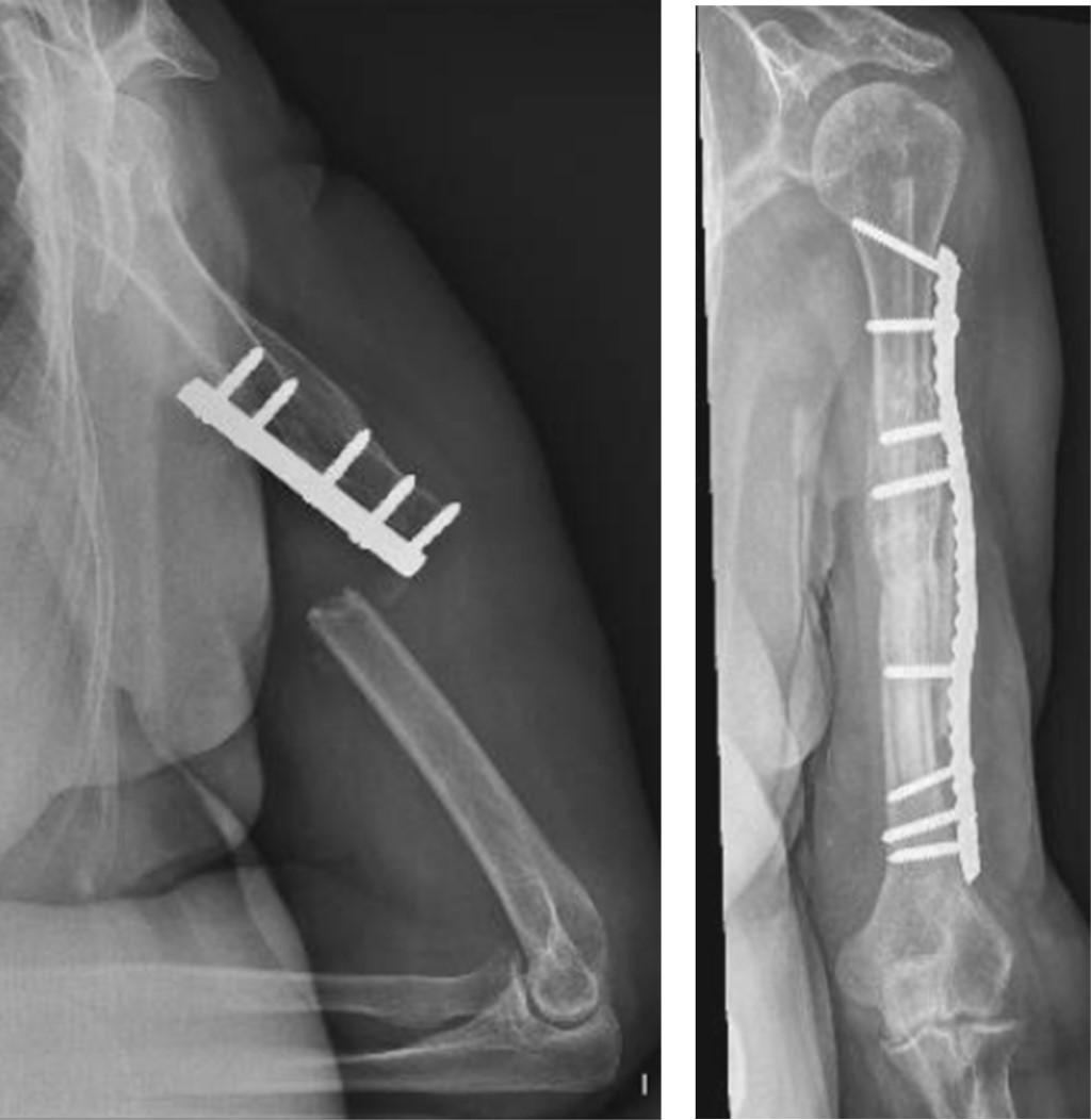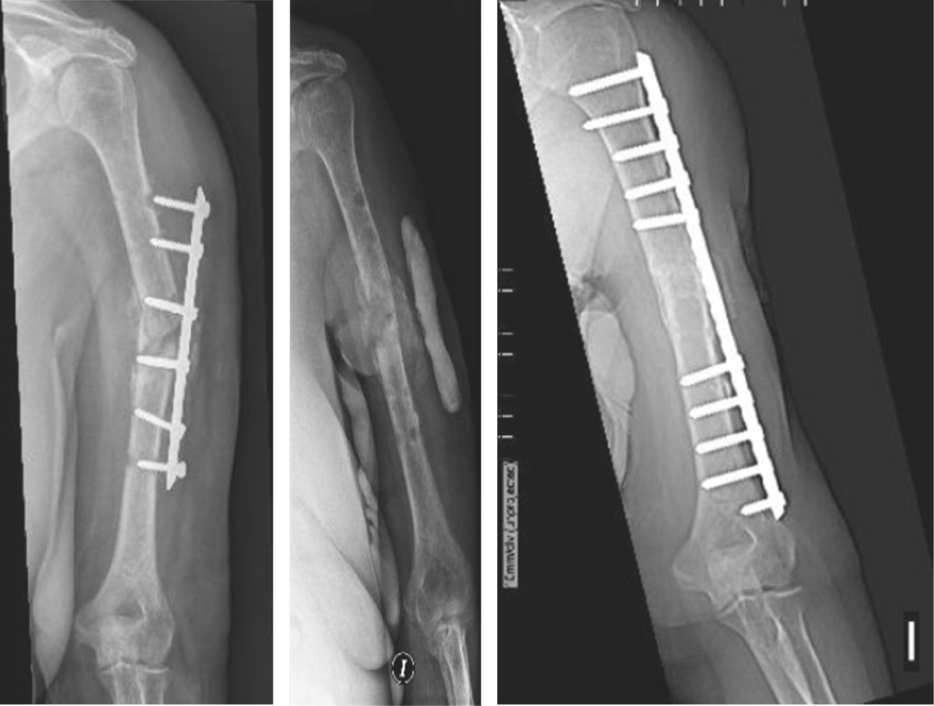El tratamiento de no-consolidaciones de húmero en pacientes adultos con osteoporosis representa un verdadero desafío para el cirujano ortopedista. Por un lado, debido a su frecuente asociación con factores propios de toda no-consolidación del húmero, como inestabilidad, dolor, angulación, rigidez articular, pérdida ósea, atrofia muscular y ósea, déficit neurológico o infección.7 Por otro lado, el cirujano debe considerar la edad avanzada del paciente y sus comorbilidades, además del hecho de que con frecuencia han sufrido un período prolongado de desuso de la extremidad, cirugías previas e implantes flojos; todos factores que alteran significativamente la calidad ósea del hueso afectado.9,10
