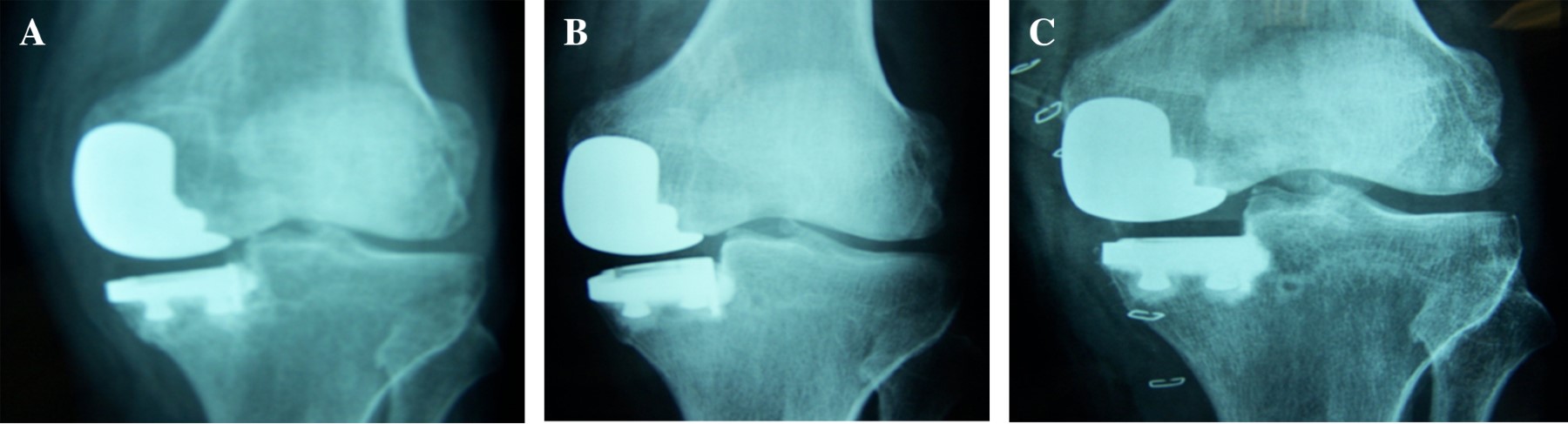 Con un seguimiento de 4.7 años en promedio y con un WOMAC promedio de 4 (rango de 0 a 44, mientras mayor es peor el resultado). No hubo recambios realizados en nuestro centro a pesar de constatarse el aflojamiento de uno de los casos a 10 años de seguimiento. No se encontró diferencia entre los pacientes mayores de 70 años y los menores, en los resultados. Sí se encontró diferencia entre las laterales y las mediales a favor de las primeras, lo mismo que describe en su publicación el Dr. Lustig referente a las PUR laterales del grupo de Lyon.27 Este resultado favorable para las PUR laterales también lo encuentra el grupo de Rafaela dirigido por el Dr. Gaggiotti,28 Santa Fe, Argentina. En seis años de seguimiento promedio no tuvieron revisiones en 29 prótesis operadas mejorando de modo significativo la condición clínica y corrigiendo incluso el valgo de 12 a 5 grados en promedio.