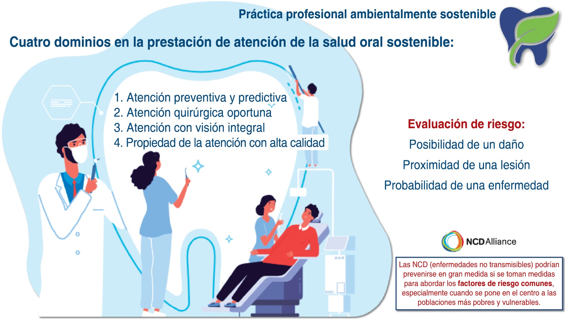 Educación y concienciación: educar y concienciar al personal médico, odontológico, pacientes y comunidad sobre la importancia de la sostenibilidad y cómo pueden contribuir a través de prácticas más responsables.